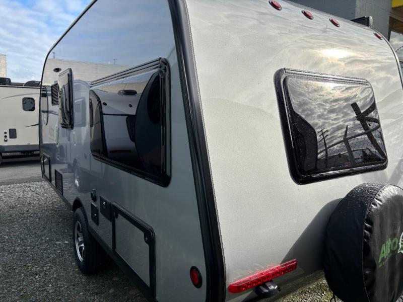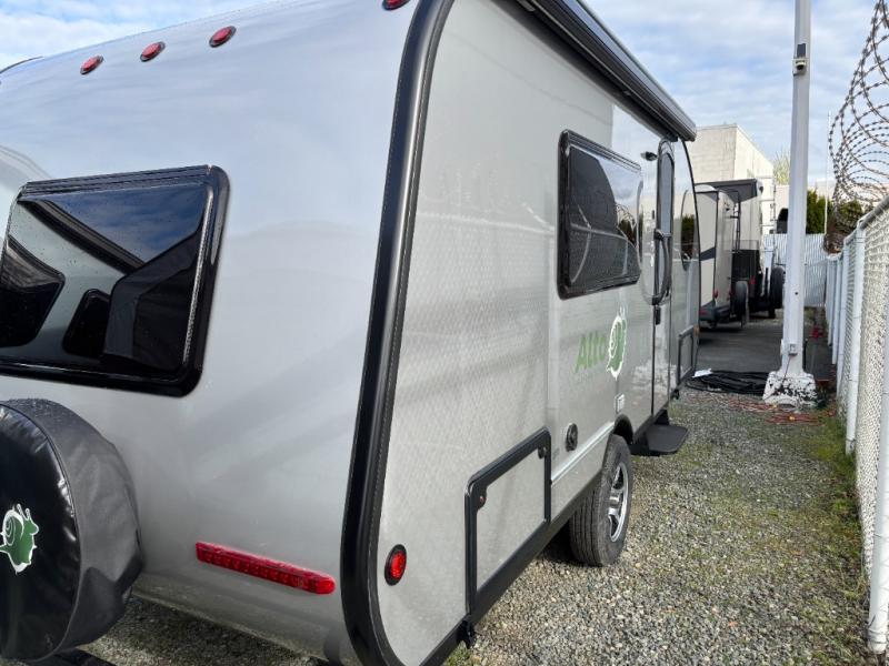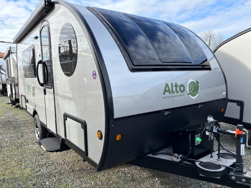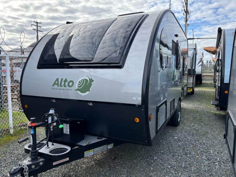 Each Alto travel trailer by Safari Condo is constructed with sustainable materials with a focus on lightweight towing. The aluminum floor and frame will add years of use to your RV, and the interior furnishings are made from composite materials. Each model includes electric brakes and a Flexiride suspension for smooth towing, a rear window screen and side door screen, plus a slick Silver Metallic exterior color or optional Azure Blue Metallic color. You will also appreciate the kitchen amenities inside to cook meals each day, the automatic 12V variable speed roof vent with a remote to keep you cool, plus available options to further customize your RV to fit your needs. Whether you choose a compact R-Series model, a spacious F-Series model, or the aerodynamic A-Series model, you'll be happy you went with an Alto travel trailer!