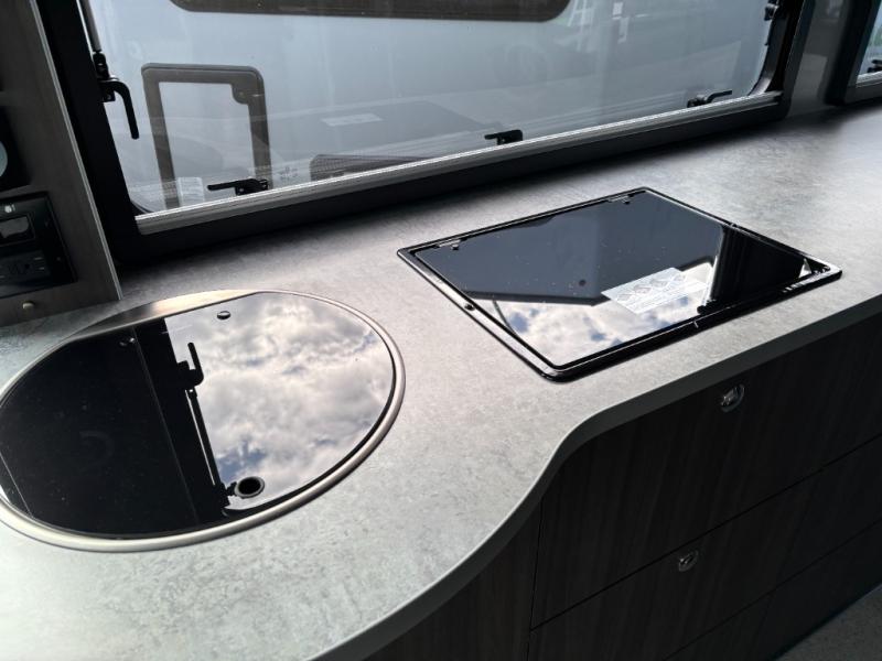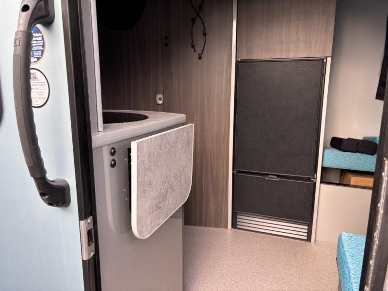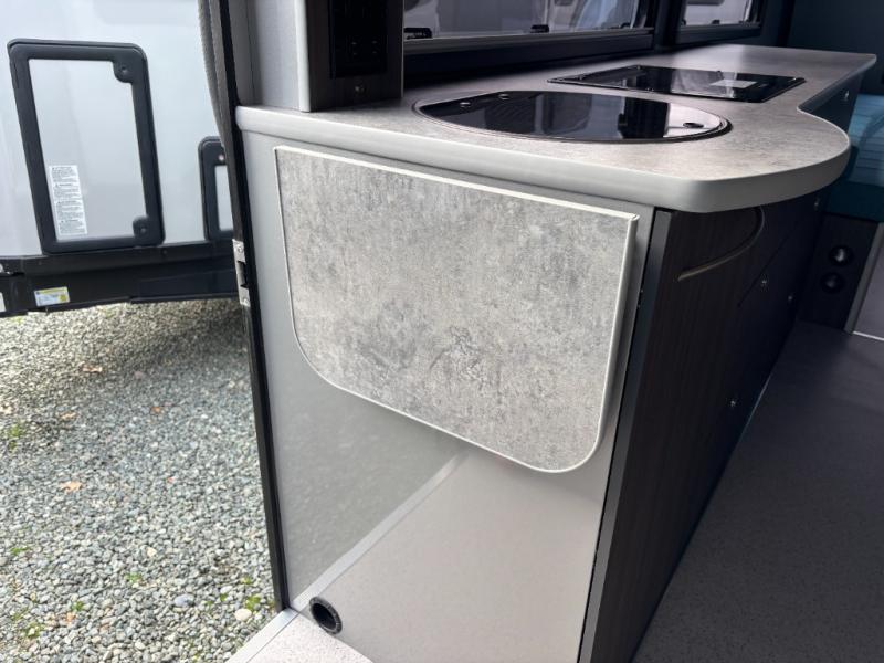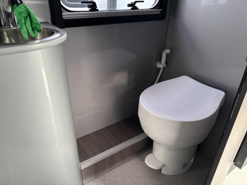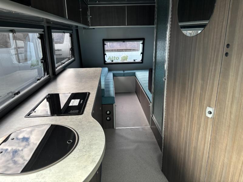 The biggest in the Alto lineup, this F2414 model is perfect for those who enjoy a little more interior space. The two single beds convert to a 76" x 81" king bed that can be set up permanently, and the front dining area for four converts to a 60" x 81" queen bed. The chef of your group will love cooking in the kitchen with a large countertop and spacious drawers, plus there is a 6 cu. ft. three-way refrigerator for cold items. This model also includes a toilet compartment with a corner sink and a roomy separate shower so two people can get ready for bed at once!