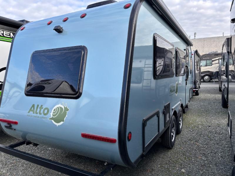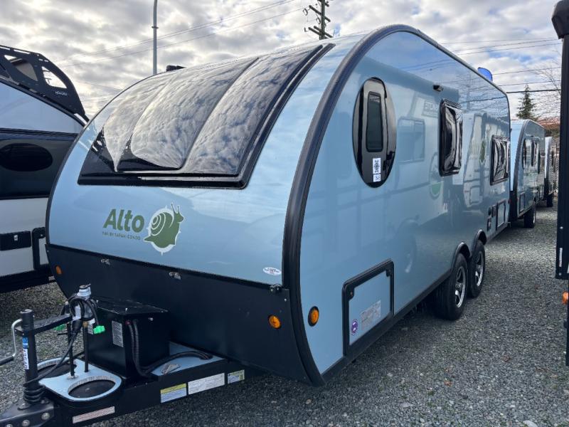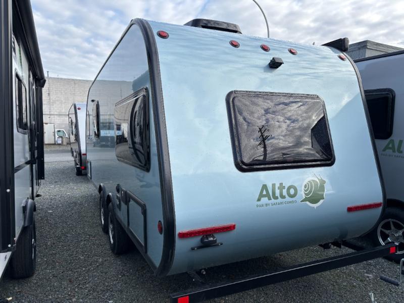 Each Alto travel trailer by Safari Condo is constructed with sustainable materials with a focus on lightweight towing. The aluminum floor and frame will add years of use to your RV, and the interior furnishings are made from composite materials. Each model includes electric brakes and a Flexiride suspension for smooth towing, a rear window screen and side door screen, plus a slick Silver Metallic exterior color or optional Azure Blue Metallic color. You will also appreciate the kitchen amenities inside to cook meals each day, the automatic 12V variable speed roof vent with a remote to keep you cool, plus available options to further customize your RV to fit your needs. Whether you choose a compact R-Series model, a spacious F-Series model, or the aerodynamic A-Series model, you'll be happy you went with an Alto travel trailer!