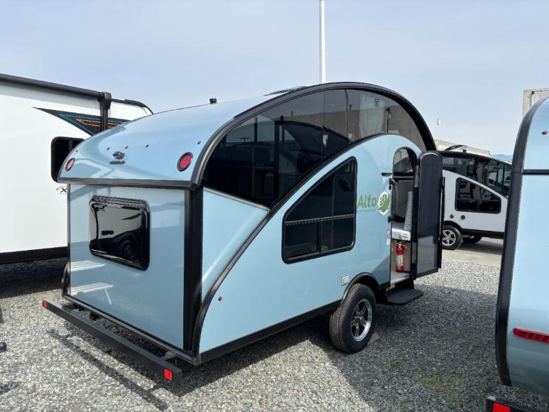 Each Alto travel trailer by Safari Condo is constructed with sustainable materials with a focus on lightweight towing. The aluminum floor and frame will add years of use to your RV, and the interior furnishings are made from composite materials. Each model includes electric brakes and a Flexiride suspension for smooth towing, a rear window screen and side door screen, plus a slick Silver Metallic exterior color or optional Azure Blue Metallic color. You will also appreciate the kitchen amenities inside to cook meals each day, the automatic 12V variable speed roof vent with a remote to keep you cool, plus available options to further customize your RV to fit your needs. Whether you choose a compact R-Series model, a spacious F-Series model, or the aerodynamic A-Series model, you'll be happy you went with an Alto travel trailer!