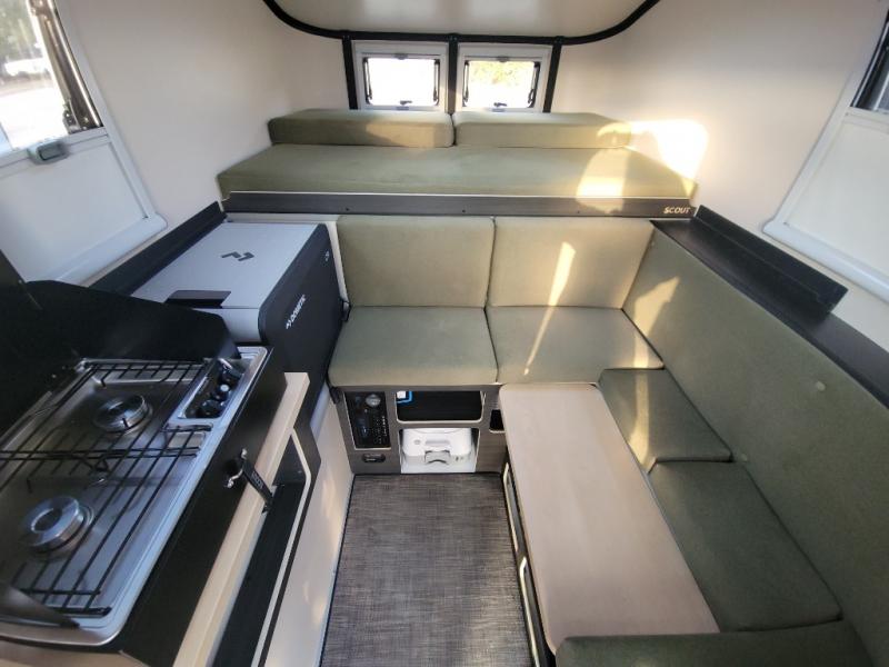 Start camping on your terms with any one of these Adventurer Manufacturing Inc. Scout truck campers! Lightweight, highly durable, and energy efficient with a flexible solar panel(s) and a Scout Unbound power system so you can go further into the woods. An aluminum exoskeleton framing and a full composite substrate construction will protect your unit all season long, and you can keep your electronics charged with the USB ports. The removable marine flooring will not only hold up through every adventure, but will also be easy to clean. Come choose the basecamp that best suits your adventurous lifestyle today!
