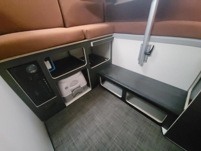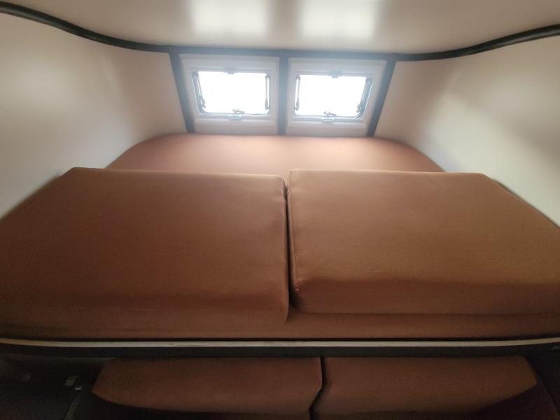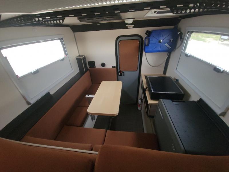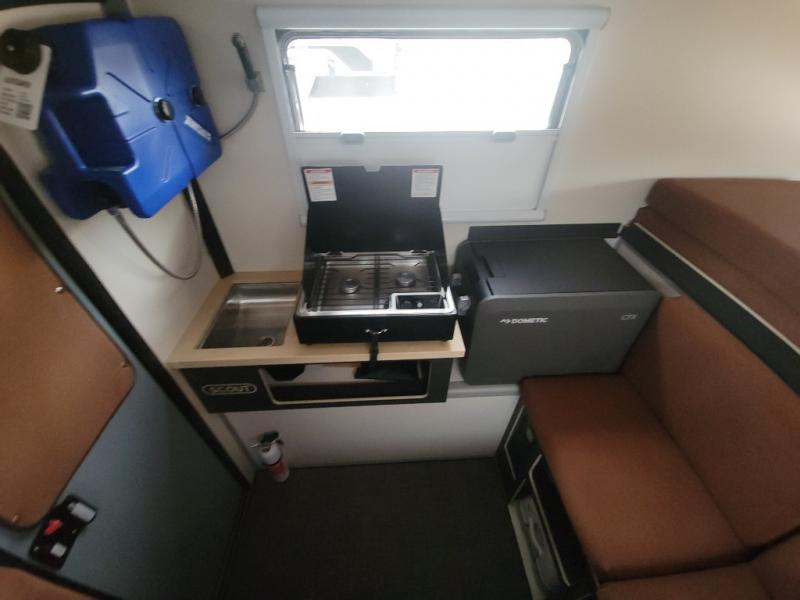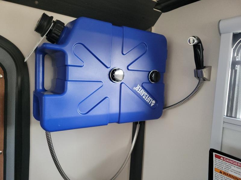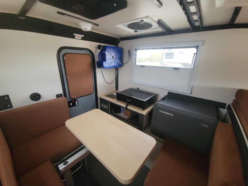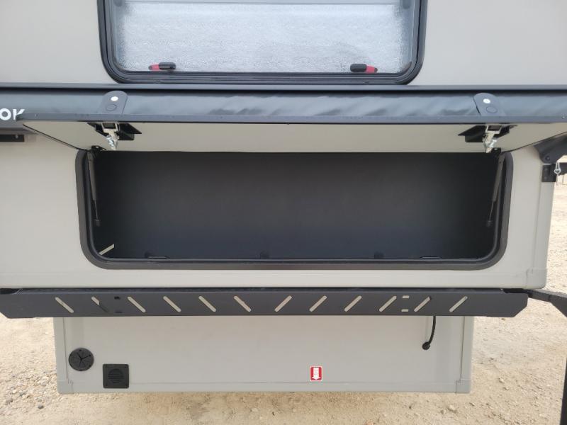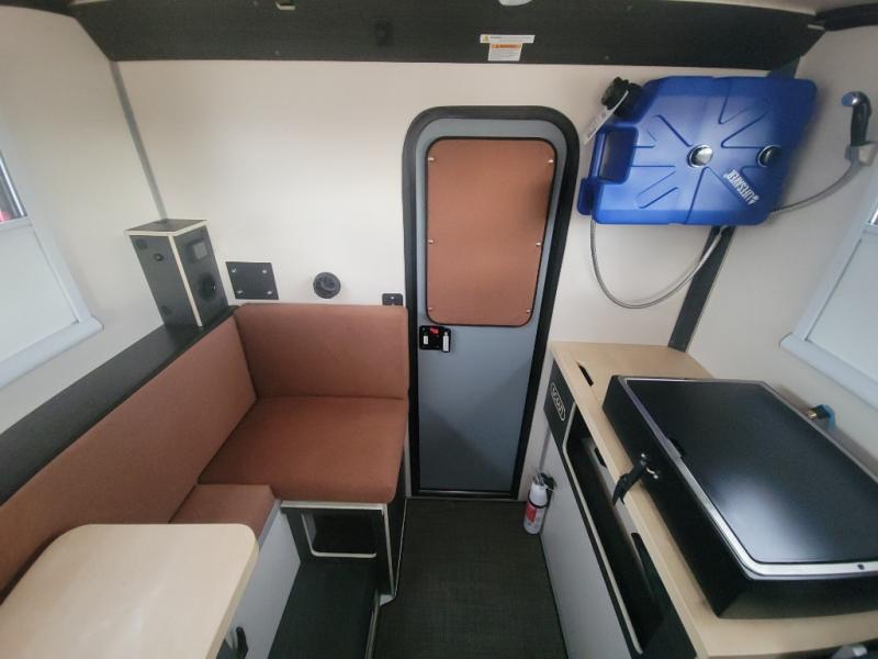Access more terrain in this truck camper with its small size and exceptionally low base weight! Pack more gear into the 4 cu. ft. gear locker and worry less about payload capacities. The removable camper jacks help you to manage your travel weight too. Relax each night on the front bed and convertible dinette lounge with sleeper conversion as you gaze up at the stars through the moon roof with a screen and solar reflective shade. Stay clean with the Lifesaver portable 4.9 gal Jerry can with charcoal filter and spray wand, and keep your dishes clean with the stainless sink with direct exterior drain and sink cover!