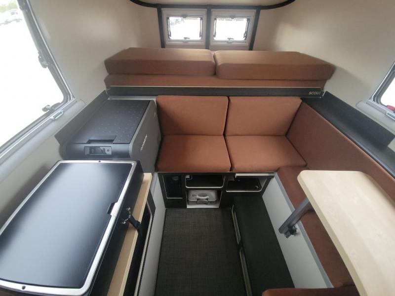 Start camping on your terms with any one of these Adventurer Manufacturing Inc. Scout truck campers! Lightweight, highly durable, and energy efficient with a flexible solar panel(s) and a Scout Unbound power system so you can go further into the woods. An aluminum exoskeleton framing and a full composite substrate construction will protect your unit all season long, and you can keep your electronics charged with the USB ports. The removable marine flooring will not only hold up through every adventure, but will also be easy to clean. Come choose the basecamp that best suits your adventurous lifestyle today!