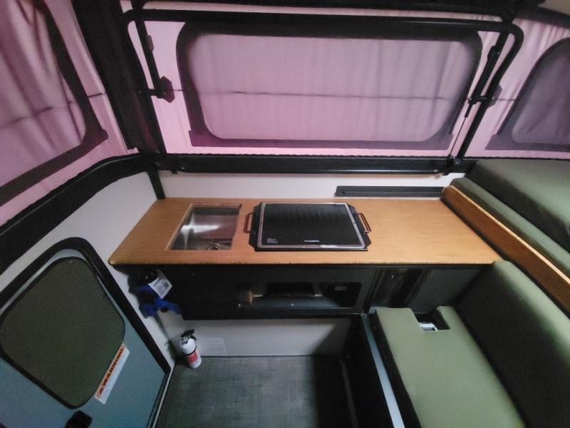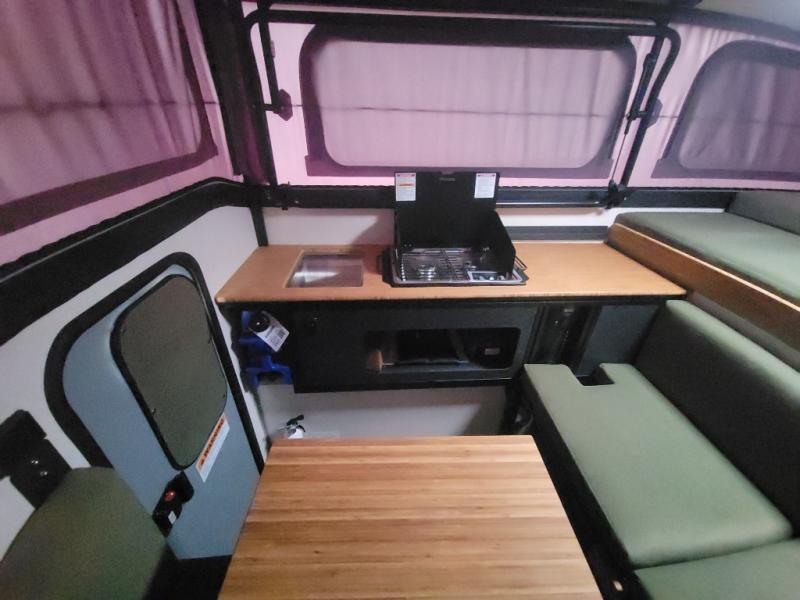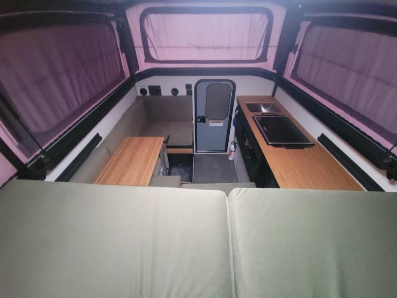 Panoramic soft-wall windows bring the outside in a way no other pop-up can. Going green – bamboo countertops, recycled paper cabinets, (and were not talking about paper mâché).