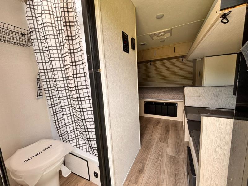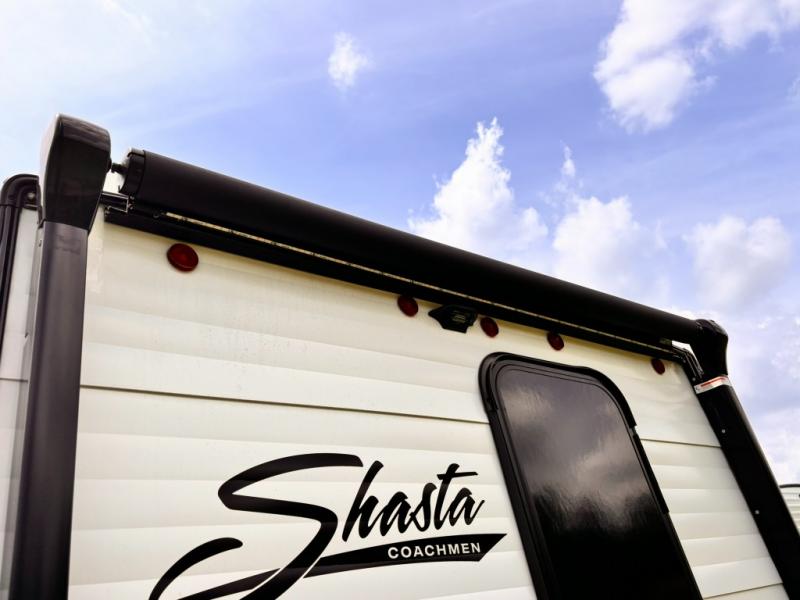 With any Compact travel trailer by Shasta RVs, you will enjoy the camping lifestyle in an easy-to-tow, lightweight unit! Each model includes four stabilizer jacks to keep your travel trailer secure at the campground, and an optional power tongue jack can be added for more convenience. You will appreciate having a tankless water heater for endless hot showers, an 8K BTU A/C to keep you cool, plus solar and back-up camera prep. The interior of each Compact travel trailer includes seamless countertops, kitchen and bath amenities, a Bluetooth portable speaker, plus storage space for all your belongings.