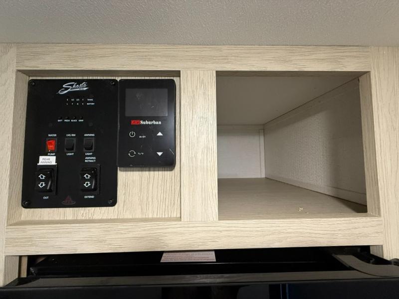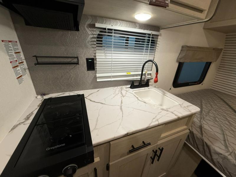 With any Compact travel trailer by Shasta RVs, you will enjoy the camping lifestyle in an easy-to-tow, lightweight unit! Each model includes four stabilizer jacks to keep your travel trailer secure at the campground, and an optional power tongue jack can be added for more convenience. You will appreciate having a tankless water heater for endless hot showers, an 8K BTU A/C to keep you cool, plus solar and back-up camera prep. The interior of each Compact travel trailer includes seamless countertops, kitchen and bath amenities, a Bluetooth portable speaker, plus storage space for all your belongings.