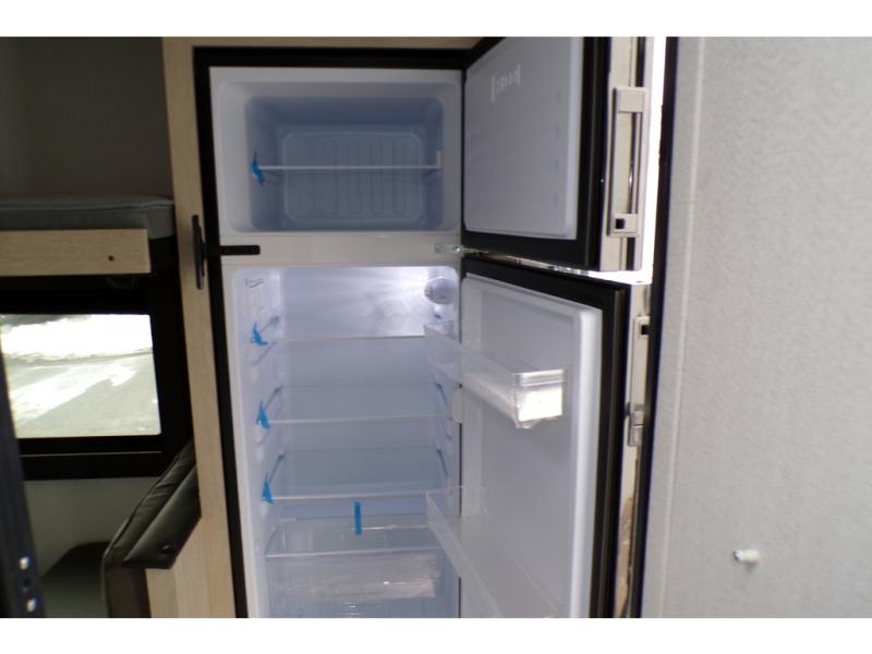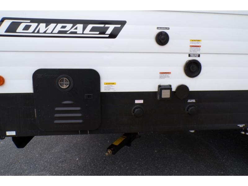 With any Shasta Compact travel trailer, you’re getting core comforts and practical upgrades across the line. Every model includes the Compact Package with a tankless water heater, 8,000 BTU roof A/C, 8 cu. ft. refrigerator, Bluetooth portable speaker, battery disconnect, black tank flush, 20-lb LP bottle, spare tire, and roadside assistance. Construction highlights include Tufflex PVC roof material with a lifetime limited warranty, R-7 fiberglass insulation in walls, floor, and roof, and an 8' exterior width on all models. For campsite convenience, you’ll find LED interior lights, USB charging stations, under-bed storage with baskets, a range hood with exhaust fan, a decorative backsplash, motion-sensor lights, and skylights.