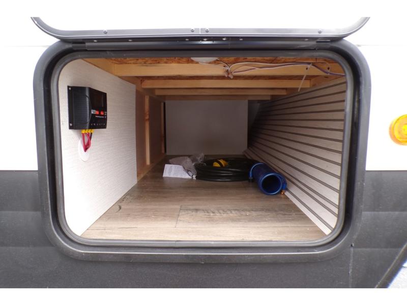 You will love exploring different campgrounds in this rear entry travel trailer! Since there is a front queen bed, a dinette, plus a flip-up bunk above the dinette, you can sleep four people comfortably. The private bathroom includes a toilet and a shower to freshen up in each day, and you can use the kitchen sink to brush your teeth at night. This model also includes an exterior storage compartment for larger camp gear and an outside shower to wash your hiking gear off!