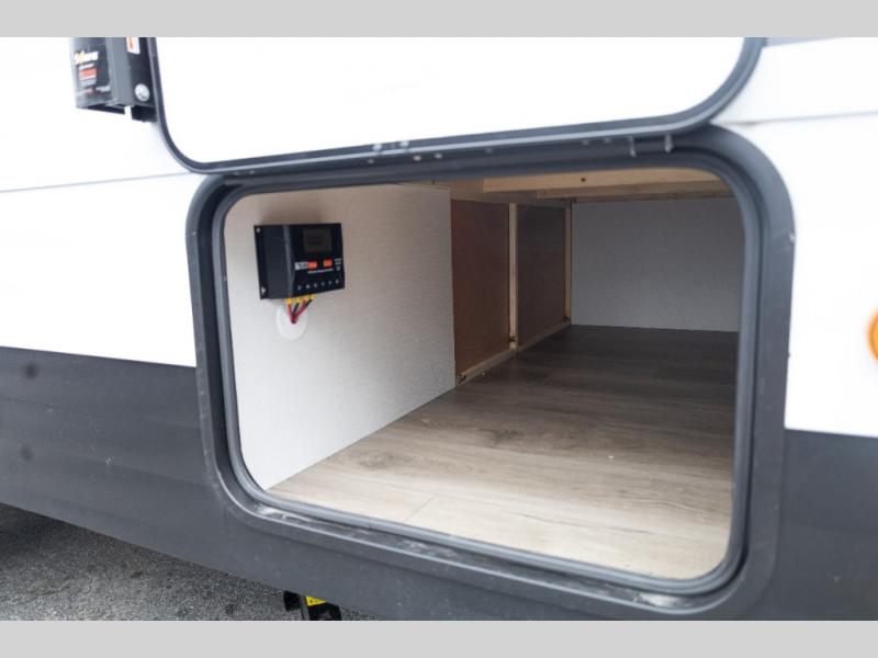 With any Compact travel trailer by Shasta RVs, you will enjoy the camping lifestyle in an easy-to-tow, lightweight unit! Each model includes four stabilizer jacks to keep your travel trailer secure at the campground, and an optional power tongue jack can be added for more convenience. You will appreciate having a tankless water heater for endless hot showers, an 8K BTU A/C to keep you cool, plus solar and back-up camera prep. The interior of each Compact travel trailer includes seamless countertops, kitchen and bath amenities, a Bluetooth portable speaker, plus storage space for all your belongings.