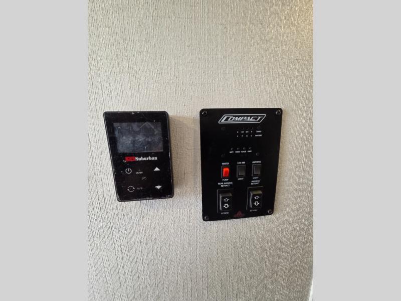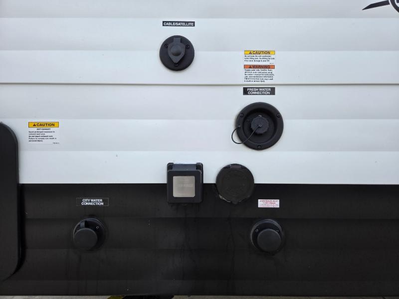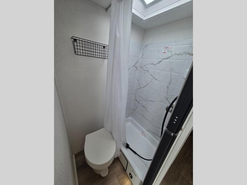 With any Shasta Compact travel trailer, you’re getting core comforts and practical upgrades across the line. Every model includes the Compact Package with a tankless water heater, 8,000 BTU roof A/C, 8 cu. ft. refrigerator, Bluetooth portable speaker, battery disconnect, black tank flush, 20-lb LP bottle, spare tire, and roadside assistance. Construction highlights include Tufflex PVC roof material with a lifetime limited warranty, R-7 fiberglass insulation in walls, floor, and roof, and an 8' exterior width on all models. For campsite convenience, you’ll find LED interior lights, USB charging stations, under-bed storage with baskets, a range hood with exhaust fan, a decorative backsplash, motion-sensor lights, and skylights.