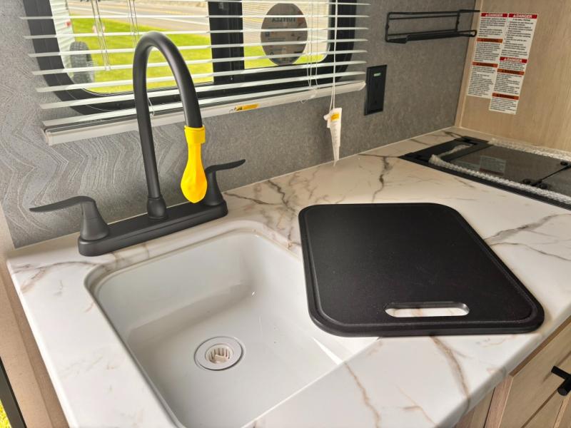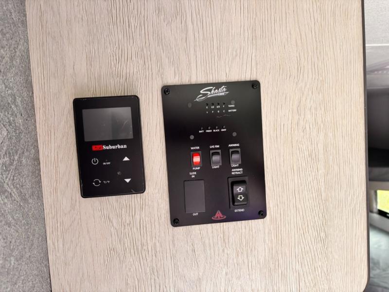 With any Compact travel trailer by Shasta RVs, you will enjoy the camping lifestyle in an easy-to-tow, lightweight unit! Each model includes four stabilizer jacks to keep your travel trailer secure at the campground, and an optional power tongue jack can be added for more convenience. You will appreciate having a tankless water heater for endless hot showers, an 8K BTU A/C to keep you cool, plus solar and back-up camera prep. The interior of each Compact travel trailer includes seamless countertops, kitchen and bath amenities, a Bluetooth portable speaker, plus storage space for all your belongings.