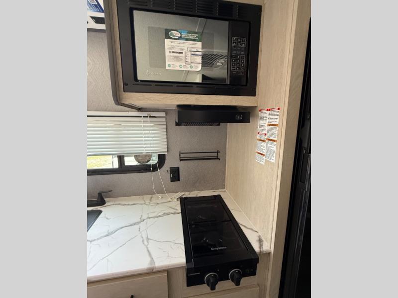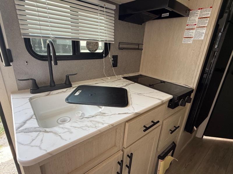 With any Compact travel trailer by Shasta RVs, you will enjoy the camping lifestyle in an easy-to-tow, lightweight unit! Each model includes four stabilizer jacks to keep your travel trailer secure at the campground, and an optional power tongue jack can be added for more convenience. You will appreciate having a tankless water heater for endless hot showers, an 8K BTU A/C to keep you cool, plus solar and back-up camera prep. The interior of each Compact travel trailer includes seamless countertops, kitchen and bath amenities, a Bluetooth portable speaker, plus storage space for all your belongings.
