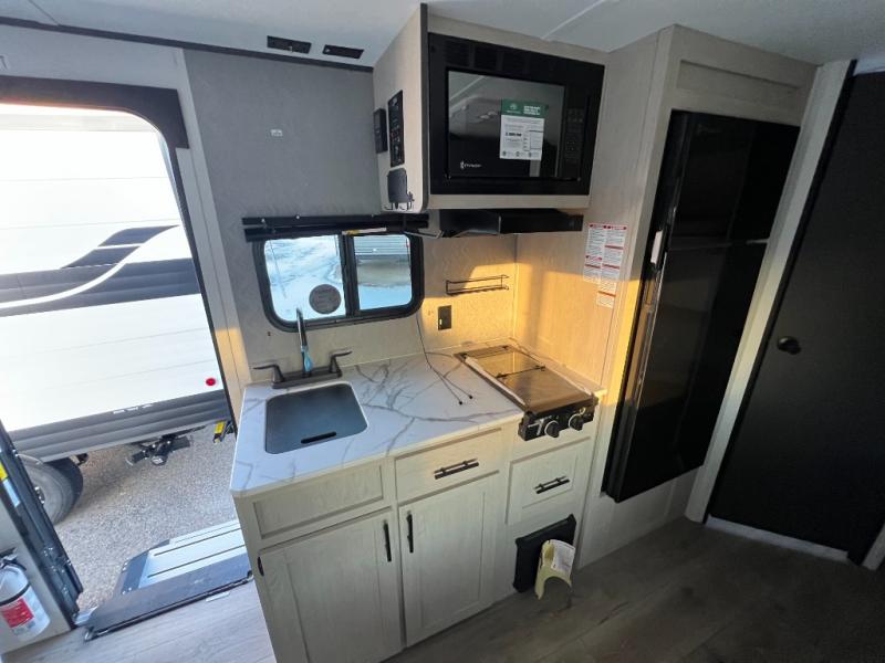 With any Compact travel trailer by Shasta RVs, you will enjoy the camping lifestyle in an easy-to-tow, lightweight unit! Each model includes four stabilizer jacks to keep your travel trailer secure at the campground, and an optional power tongue jack can be added for more convenience. You will appreciate having a tankless water heater for endless hot showers, an 8K BTU A/C to keep you cool, plus solar and back-up camera prep. The interior of each Compact travel trailer includes seamless countertops, kitchen and bath amenities, a Bluetooth portable speaker, plus storage space for all your belongings.