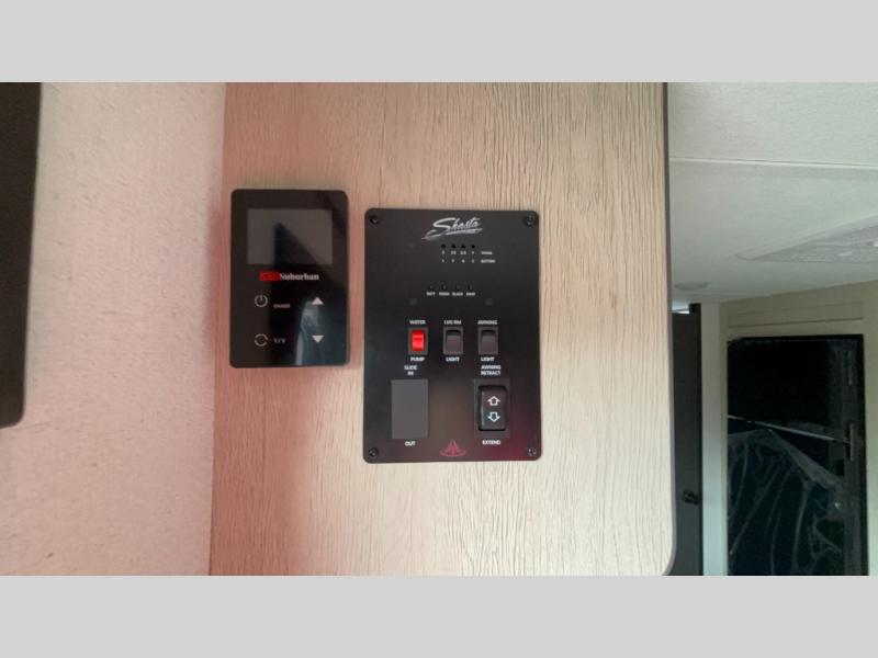 With any Compact travel trailer by Shasta RVs, you will enjoy the camping lifestyle in an easy-to-tow, lightweight unit! Each model includes four stabilizer jacks to keep your travel trailer secure at the campground, and an optional power tongue jack can be added for more convenience. You will appreciate having a tankless water heater for endless hot showers, an 8K BTU A/C to keep you cool, plus solar and back-up camera prep. The interior of each Compact travel trailer includes seamless countertops, kitchen and bath amenities, a Bluetooth portable speaker, plus storage space for all your belongings.