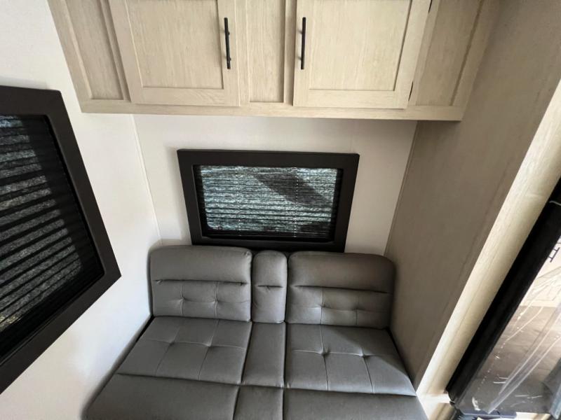 This non-slide i-5 Edition features everything you need for a cozy weekend away a a couples unit or small family of three or four. The rear of the unit features ample seating with opposing sofa and booth dinette. Each can accommodate a tired camper at night if needed. The kitchen is fully equipped for your camping trips featuring a three burner cooktop, a microwave cabinet, a large sink, plus a pantry and residential style refrigerator for food storage. In the front of this unit, a 60" x 74" RV queen bed provides a comfortable night's rest after a full day of fun. Outside, enjoy a nice pass-through storage compartment to easily access all of your outdoor camping gear plus more.