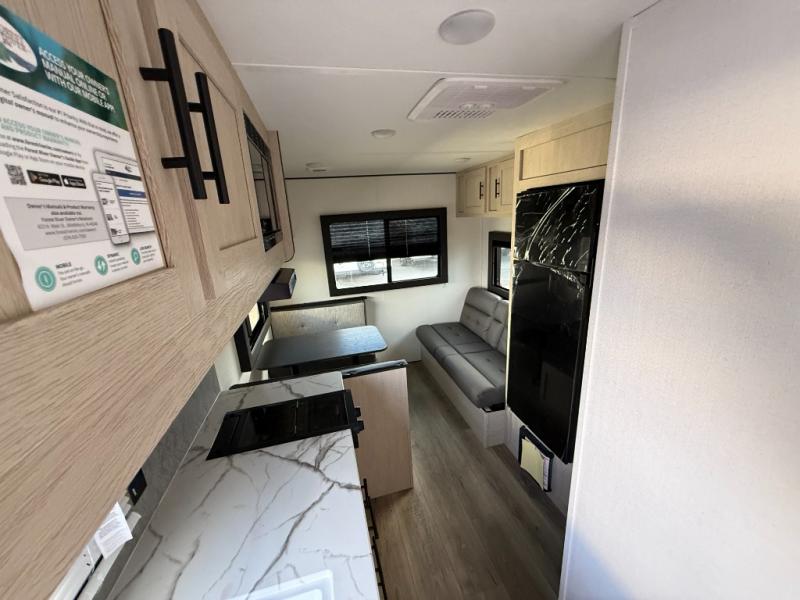 In any Shasta i-5 Edition travel trailer, you will find quality craftsmanship along with an affordable price tag. These units each feature four stabilizer jacks to make setting up easier and an enclosed underbelly for added protection as you travel. The Base Camp Package provides each unit with black tank flush, a monitor panel for quick access to the functions of your unit, a 13.5K A/C unit, and a tankless water heater for added convenience. Inside, you'll find seamless countertops, sink covers, a portable Bluetooth speaker, and more comforts!