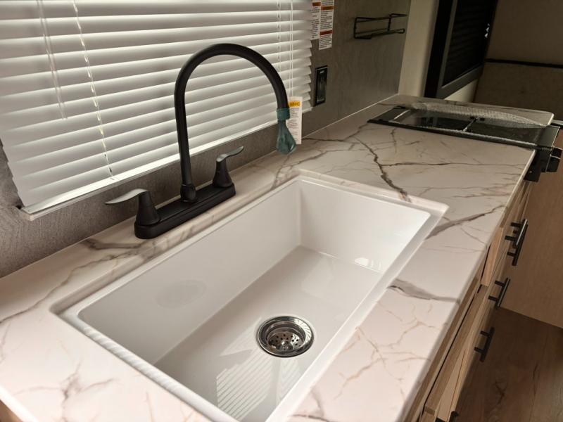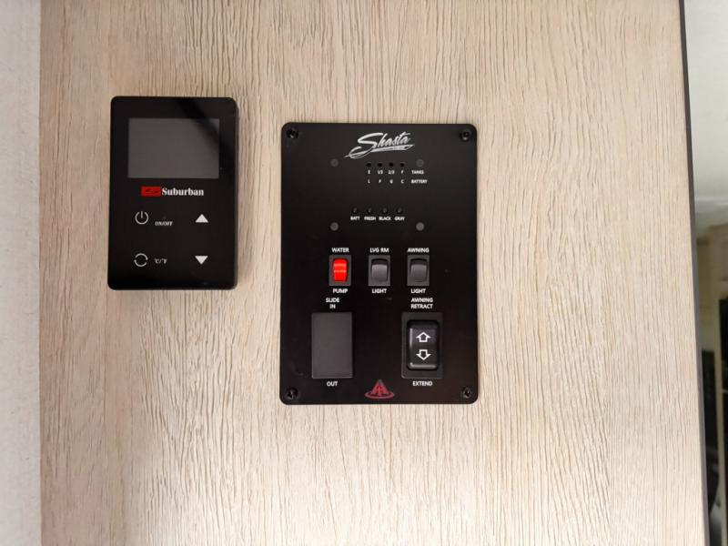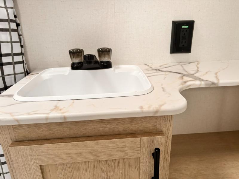 In any Shasta i-5 Edition travel trailer, you will find quality craftsmanship along with an affordable price tag. These units each feature four stabilizer jacks to make setting up easier and an enclosed underbelly for added protection as you travel. The Base Camp Package provides each unit with black tank flush, a monitor panel for quick access to the functions of your unit, a 13.5K A/C unit, and a tankless water heater for added convenience. Inside, you'll find seamless countertops, sink covers, a portable Bluetooth speaker, and more comforts!