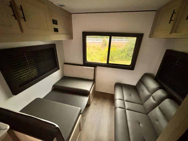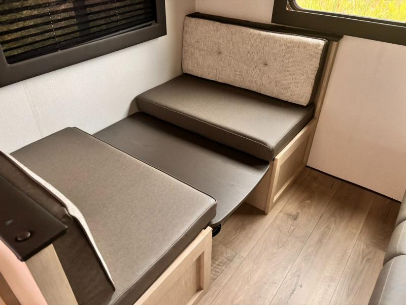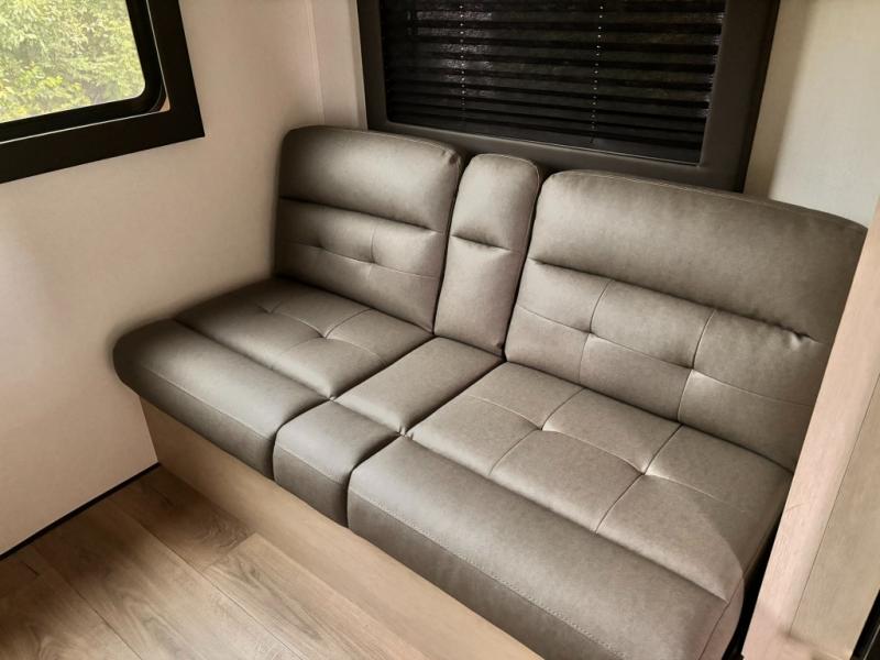 This non-slide i-5 Edition features everything you need for a cozy weekend away a a couples unit or small family of three or four. The rear of the unit features ample seating with opposing sofa and booth dinette. Each can accommodate a tired camper at night if needed. The kitchen is fully equipped for your camping trips featuring a three burner cooktop, a microwave cabinet, a large sink, plus a pantry and residential style refrigerator for food storage. In the front of this unit, a 60" x 74" RV queen bed provides a comfortable night's rest after a full day of fun. Outside, enjoy a nice pass-through storage compartment to easily access all of your outdoor camping gear plus more.