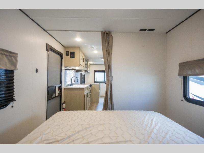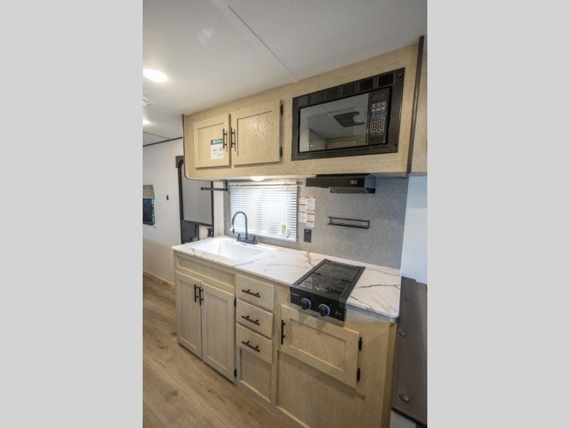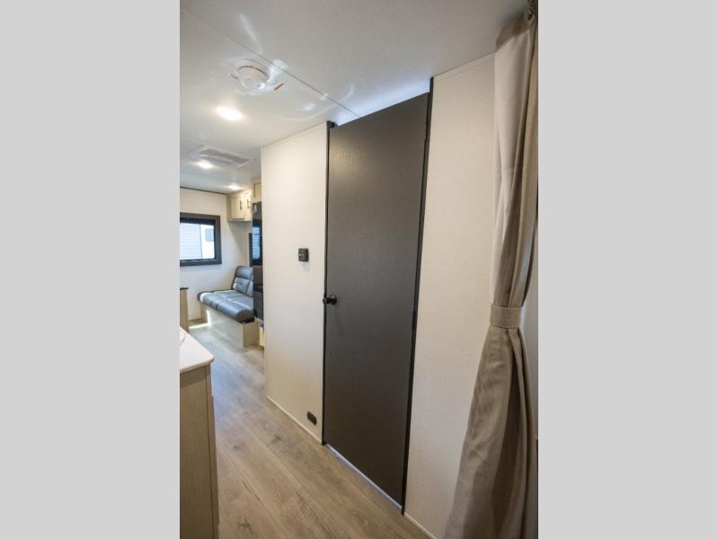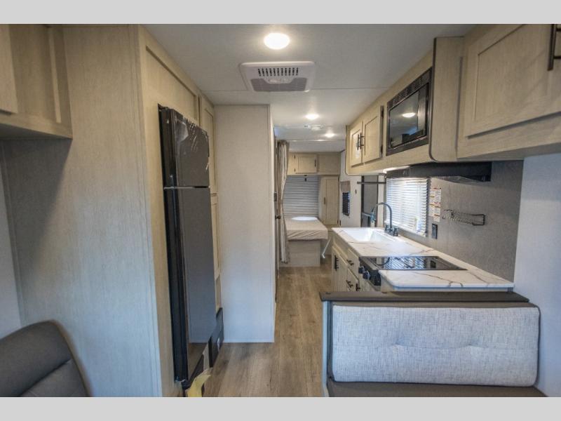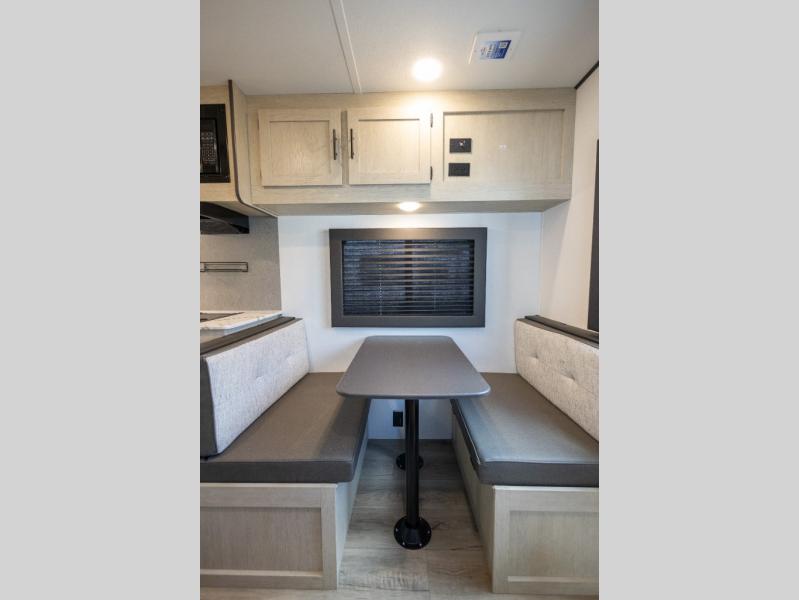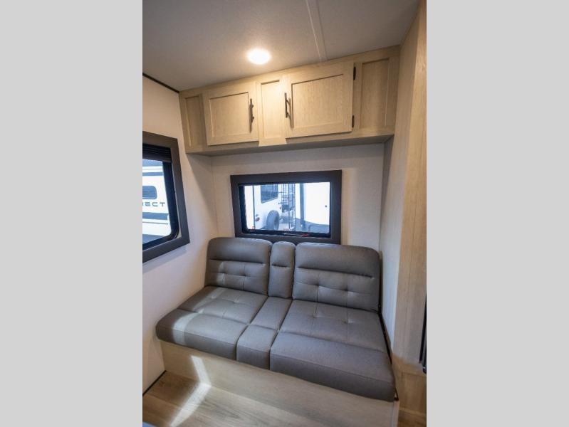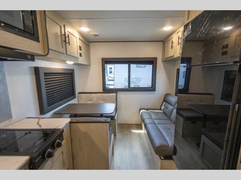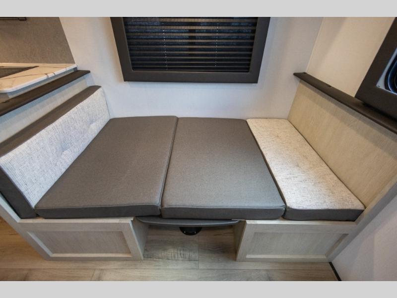 This non-slide i-5 Edition features everything you need for a cozy weekend away a a couples unit or small family of three or four. The rear of the unit features ample seating with opposing sofa and booth dinette. Each can accommodate a tired camper at night if needed. The kitchen is fully equipped for your camping trips featuring a three burner cooktop, a microwave cabinet, a large sink, plus a pantry and residential style refrigerator for food storage. In the front of this unit, a 60" x 74" RV queen bed provides a comfortable night's rest after a full day of fun. Outside, enjoy a nice pass-through storage compartment to easily access all of your outdoor camping gear plus more.