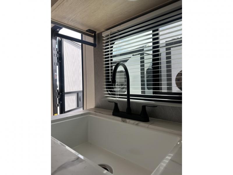 In any Shasta i-5 Edition travel trailer, you will find quality craftsmanship along with an affordable price tag. These units each feature four stabilizer jacks to make setting up easier and an enclosed underbelly for added protection as you travel. The Base Camp Package provides each unit with black tank flush, a monitor panel for quick access to the functions of your unit, a 13.5K A/C unit, and a tankless water heater for added convenience. Inside, you'll find seamless countertops, sink covers, a portable Bluetooth speaker, and more comforts!