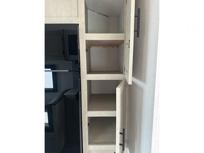 This non-slide i-5 Edition features everything you need for a cozy weekend away a a couples unit or small family of three or four. The rear of the unit features ample seating with opposing sofa and booth dinette. Each can accommodate a tired camper at night if needed. The kitchen is fully equipped for your camping trips featuring a three burner cooktop, a microwave cabinet, a large sink, plus a pantry and residential style refrigerator for food storage. In the front of this unit, a 60" x 74" RV queen bed provides a comfortable night's rest after a full day of fun. Outside, enjoy a nice pass-through storage compartment to easily access all of your outdoor camping gear plus more.