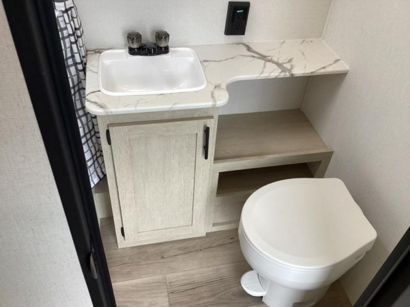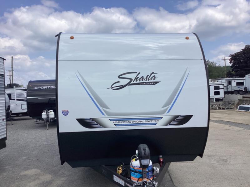 In any Shasta i-5 Edition travel trailer, you will find quality craftsmanship along with an affordable price tag. These units each feature four stabilizer jacks to make setting up easier and an enclosed underbelly for added protection as you travel. The Base Camp Package provides each unit with black tank flush, a monitor panel for quick access to the functions of your unit, a 13.5K A/C unit, and a tankless water heater for added convenience. Inside, you'll find seamless countertops, sink covers, a portable Bluetooth speaker, and more comforts!