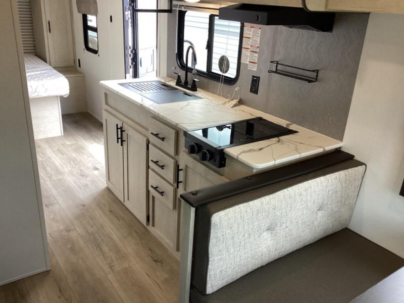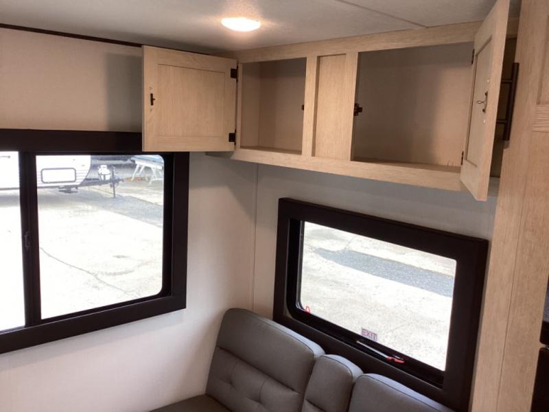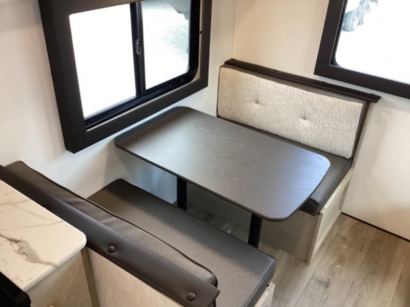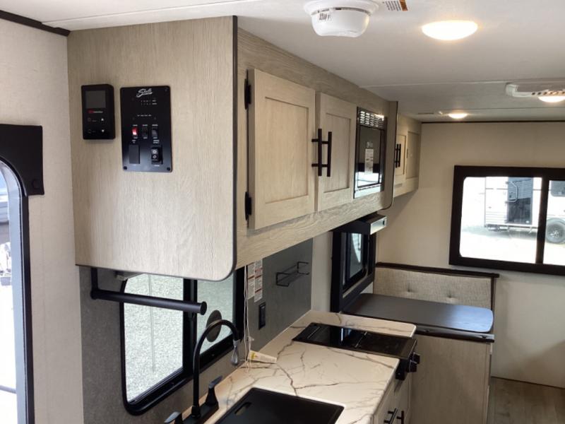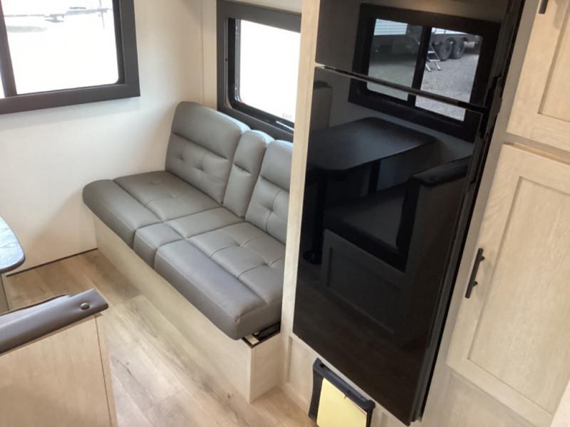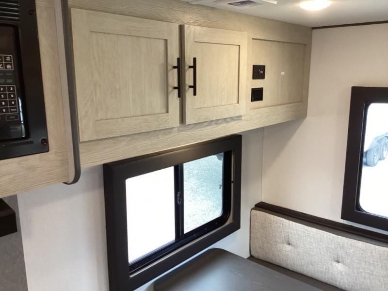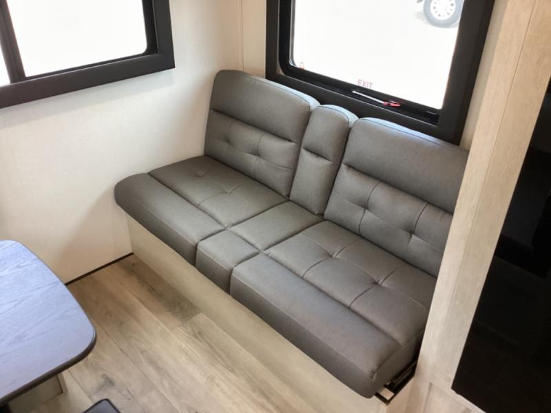 This non-slide i-5 Edition features everything you need for a cozy weekend away a a couples unit or small family of three or four. The rear of the unit features ample seating with opposing sofa and booth dinette. Each can accommodate a tired camper at night if needed. The kitchen is fully equipped for your camping trips featuring a three burner cooktop, a microwave cabinet, a large sink, plus a pantry and residential style refrigerator for food storage. In the front of this unit, a 60" x 74" RV queen bed provides a comfortable night's rest after a full day of fun. Outside, enjoy a nice pass-through storage compartment to easily access all of your outdoor camping gear plus more.