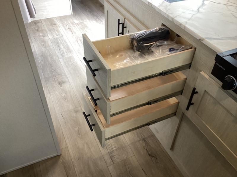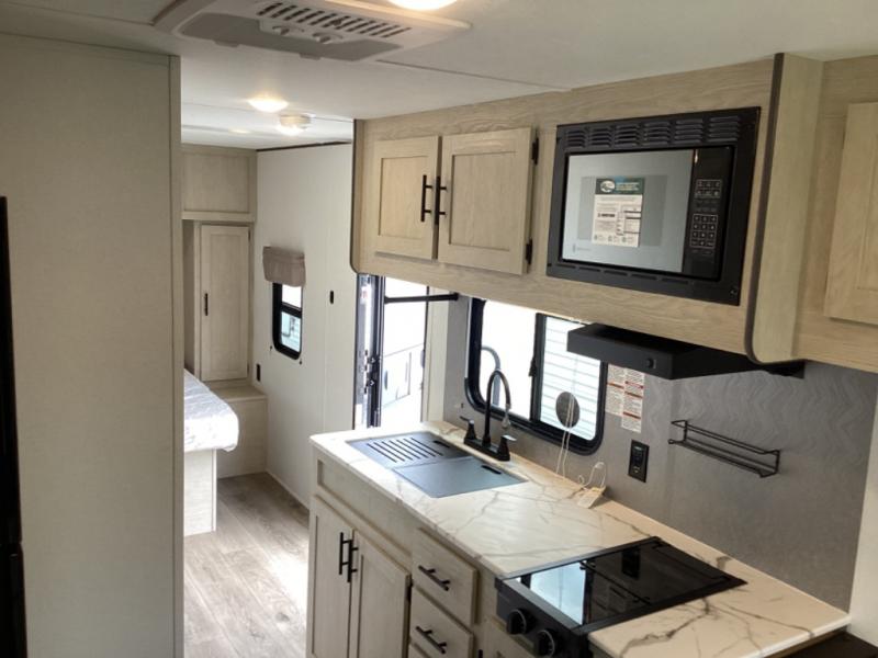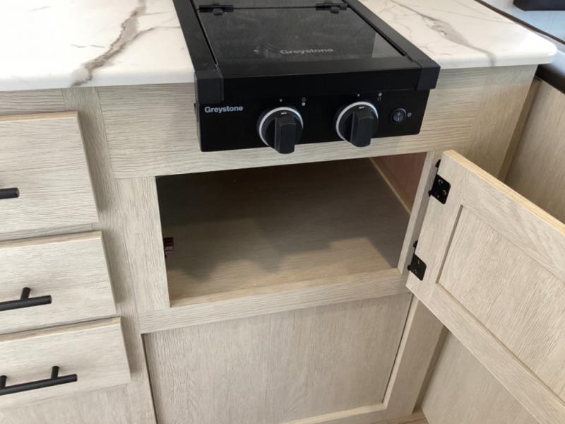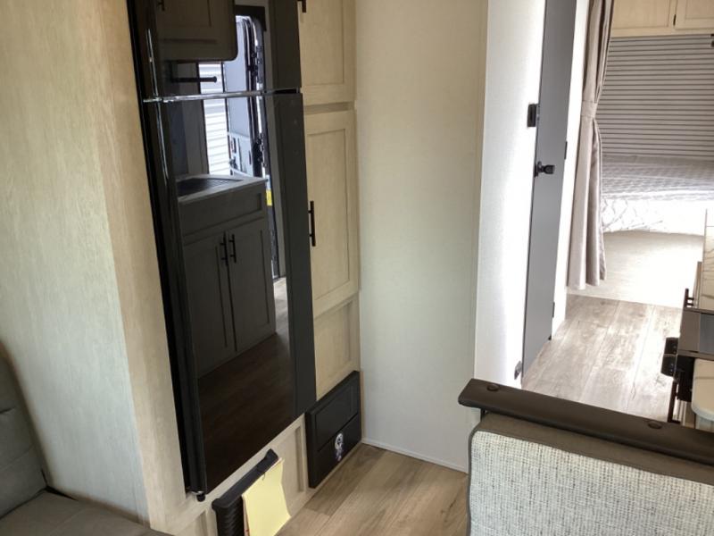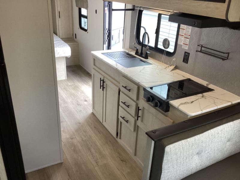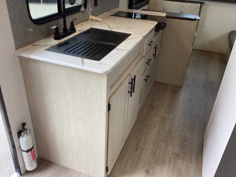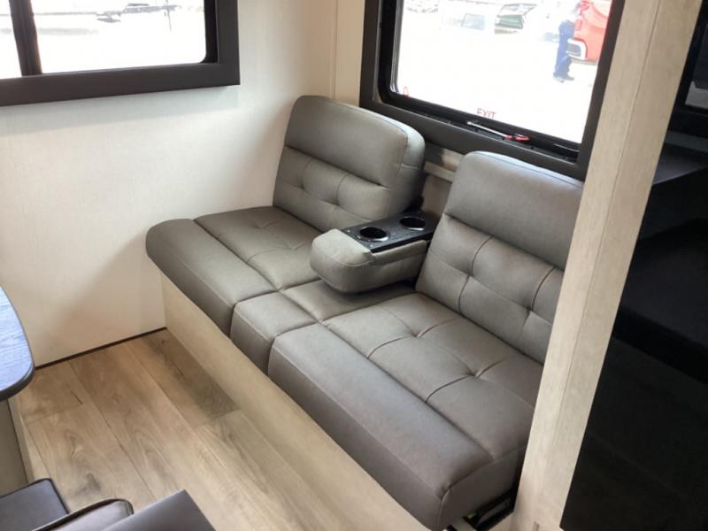 This non-slide i-5 Edition features everything you need for a cozy weekend away a a couples unit or small family of three or four. The rear of the unit features ample seating with opposing sofa and booth dinette. Each can accommodate a tired camper at night if needed. The kitchen is fully equipped for your camping trips featuring a three burner cooktop, a microwave cabinet, a large sink, plus a pantry and residential style refrigerator for food storage. In the front of this unit, a 60" x 74" RV queen bed provides a comfortable night's rest after a full day of fun. Outside, enjoy a nice pass-through storage compartment to easily access all of your outdoor camping gear plus more.