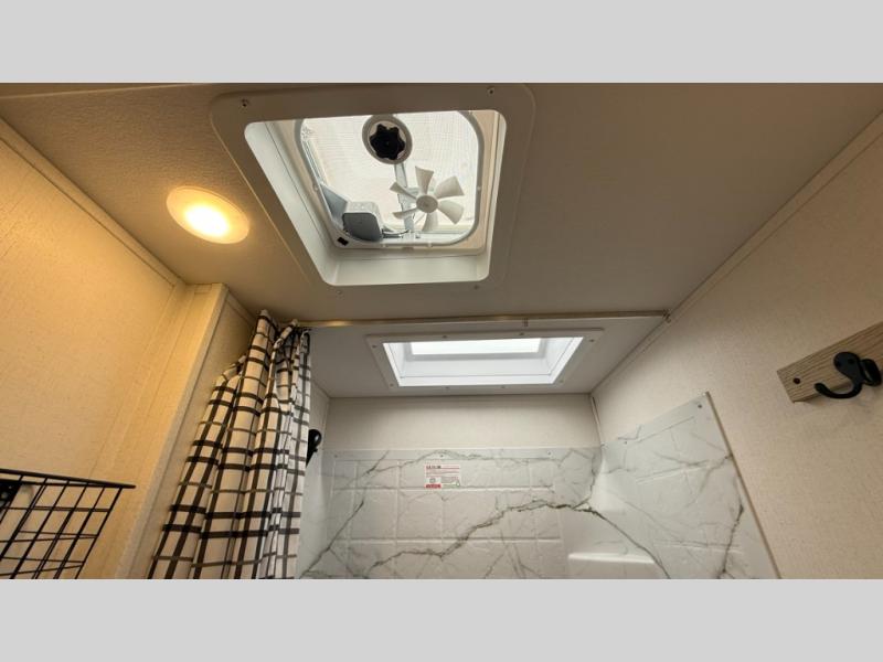 In any Shasta i-5 Edition travel trailer, you will find quality craftsmanship along with an affordable price tag. These units each feature brawn built sidewalls for sturdiness and an enclosed underbelly for added protection as you travel. The Base Camp Package provides each unit with black tank flush, a monitor panel for quick access to the functions of your unit, a 13.5K A/C unit, and a tankless water heater for added convenience. Inside, you'll find pocket-bored and screwed cabinets, skylights, a portable Bluetooth speaker, and more comforts!