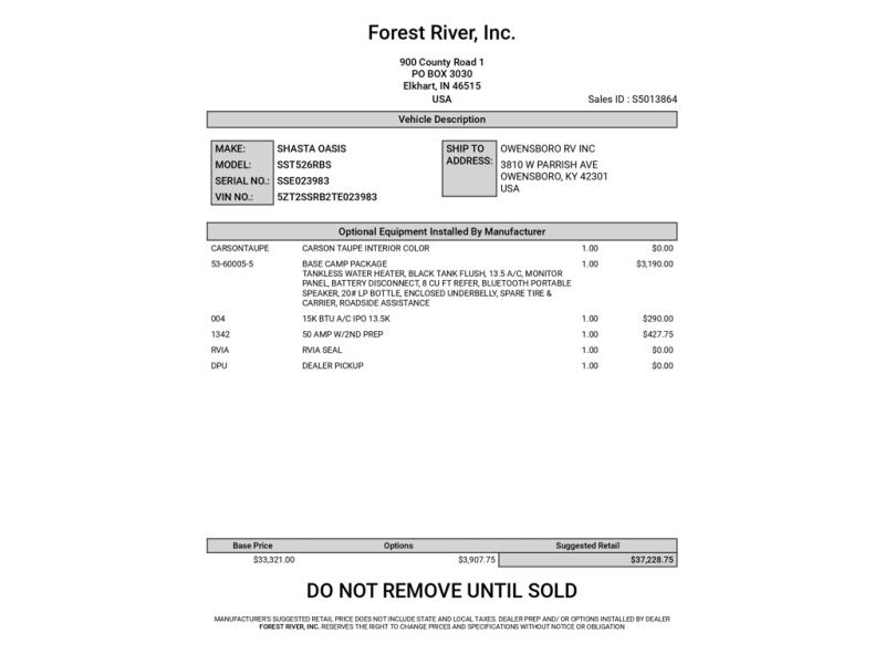 Shasta i-5 Edition travel trailer 526RBS highlights: