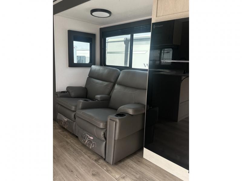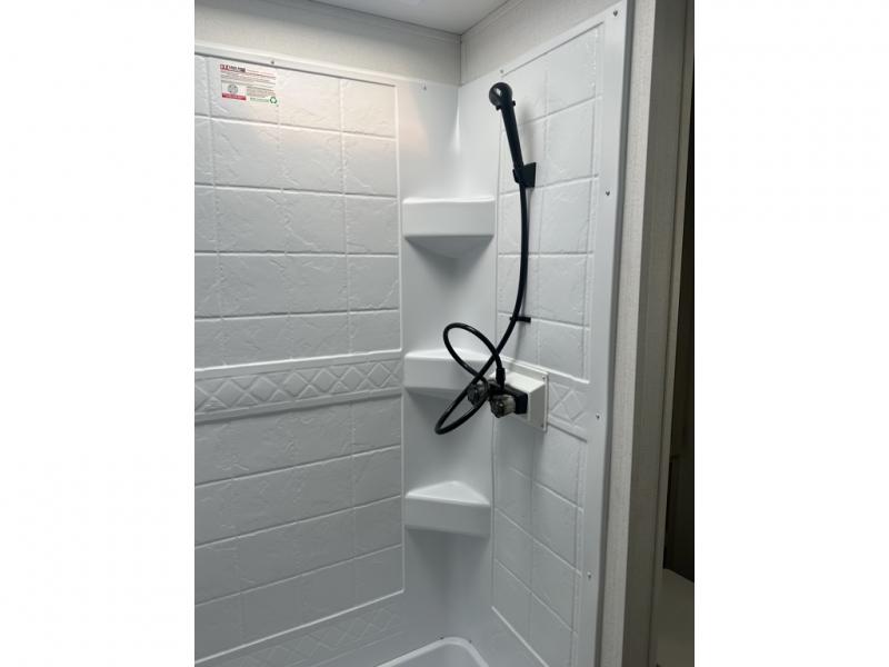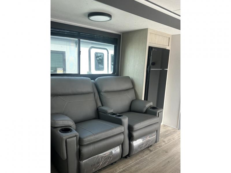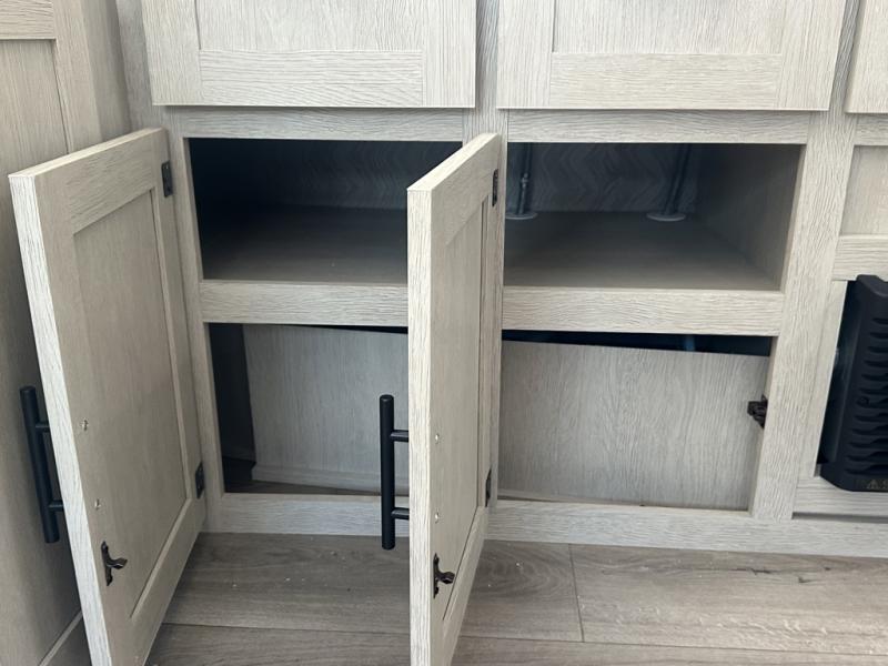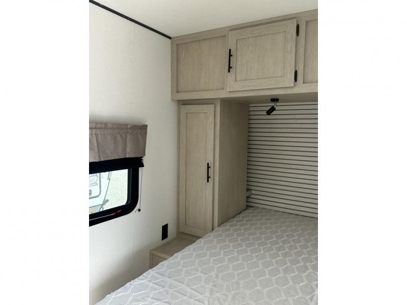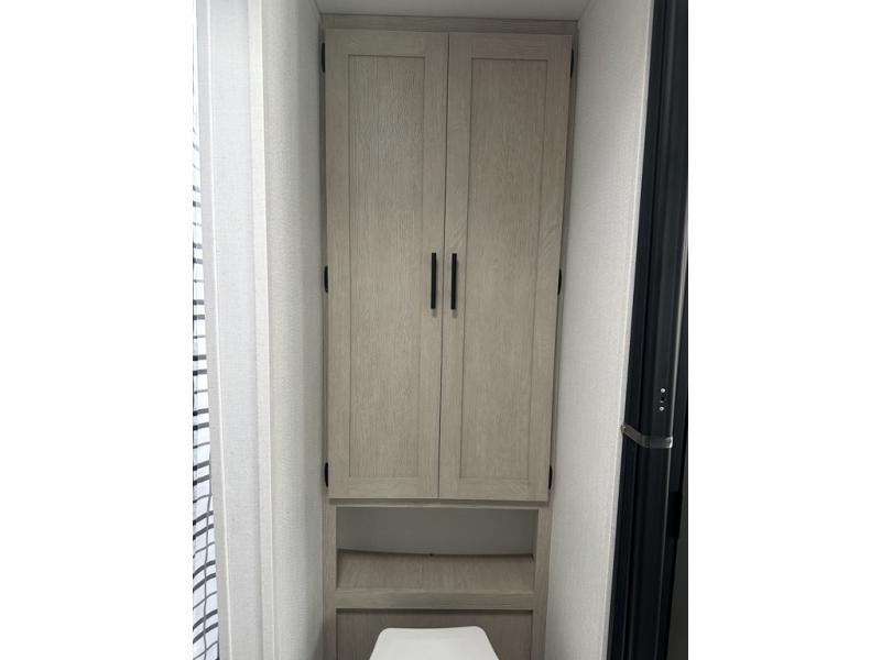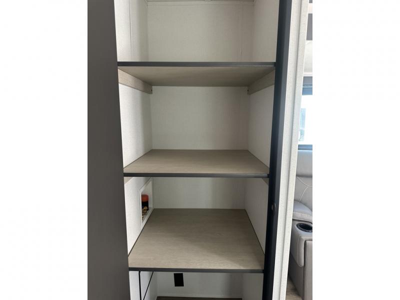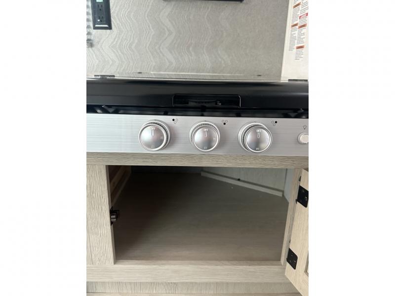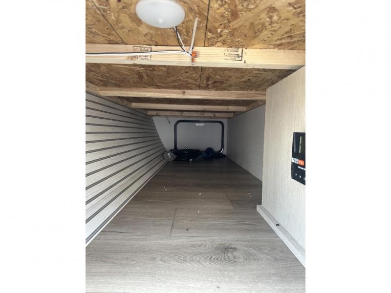 You'll feel right at home in this spacious travel trailer thanks to the large slide out, front bedroom, and full rear bath. There is a 24" x 40" tub, a toilet with partitions, and dual bath sinks with a mirror which allow you both to get ready for bed at once. The fully-equipped interior kitchen includes generous counter space to prep meals, and the outside kitchen will be perfect when the weather is nice. A large pantry will give you a place to store food, paper products, and more, plus this space is washer/dryer ready if you choose to add those appliances.