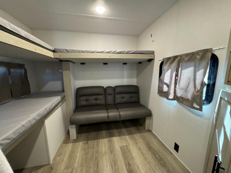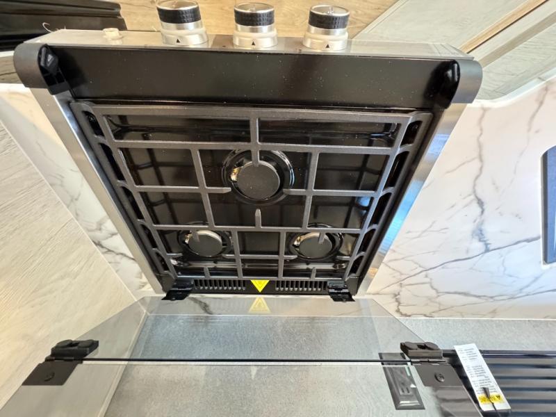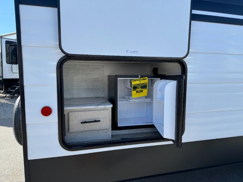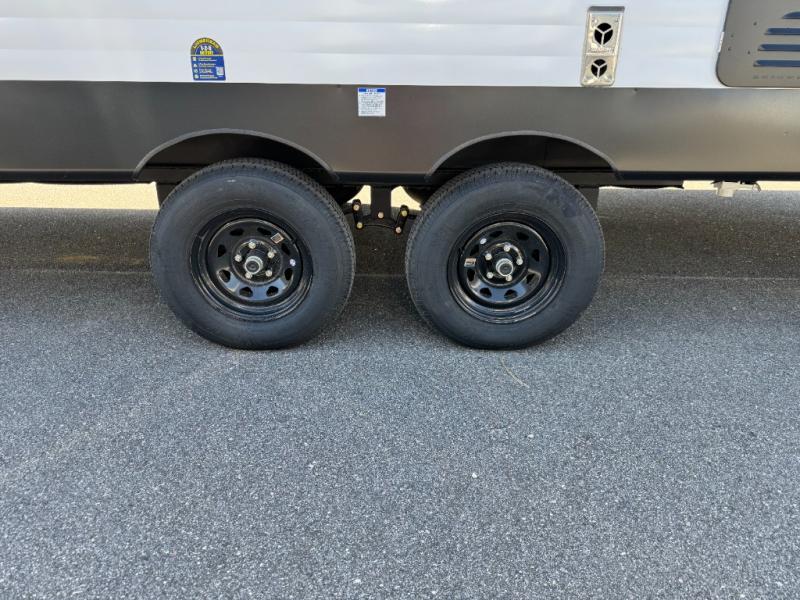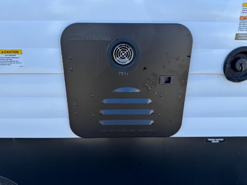 BASE CAMP PACKAGE TANKLESS WATER HEATER, BLACK TANK FLUSH, 13.5 A/C, MONITOR PANEL, BATTERY DISCONNECT, 8 CU FT REFER, BLUETOOTH PORTABLE SPEAKER, 20# LP BOTTLE, ENCLOSED UNDERBELLY, SPARE TIRE & CARRIER