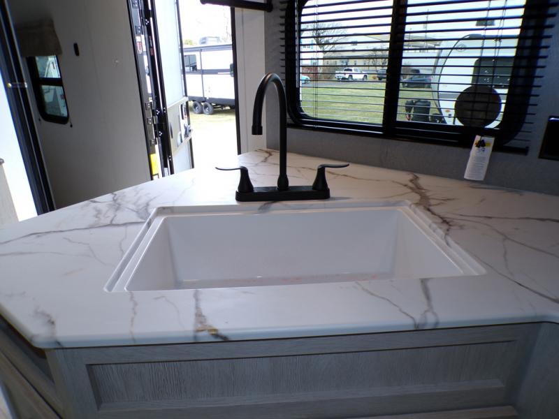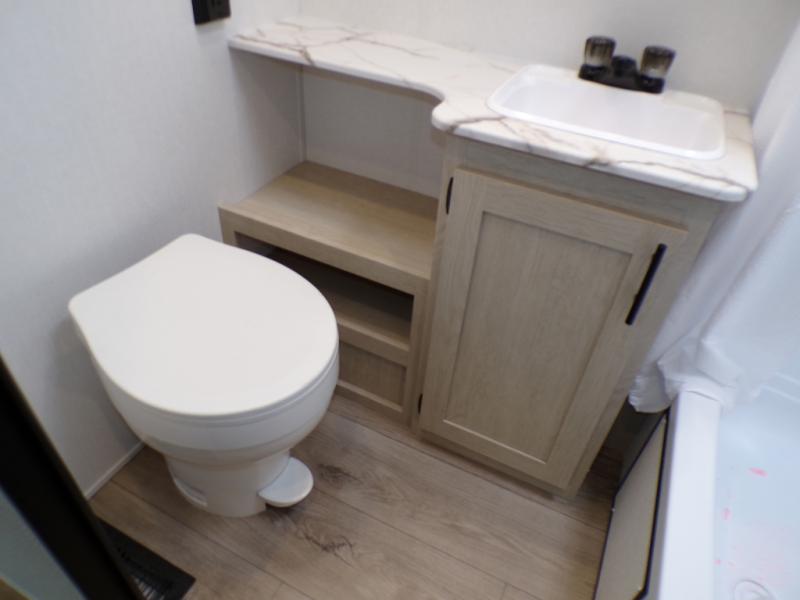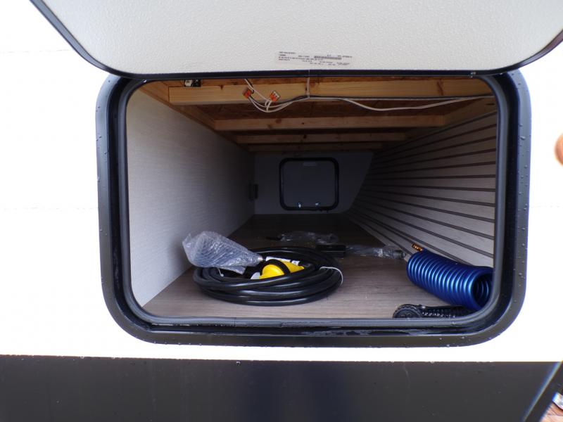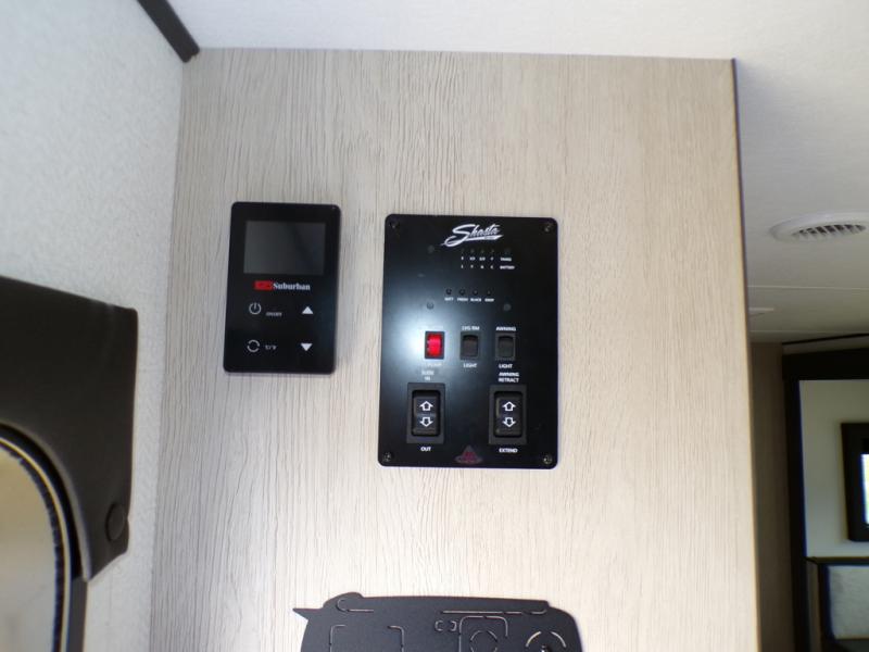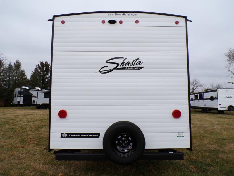 In any Shasta i-5 Edition travel trailer, you will find quality craftsmanship along with an affordable price tag. These units each feature four stabilizer jacks to make setting up easier and an enclosed underbelly for added protection as you travel. The Base Camp Package provides each unit with black tank flush, a monitor panel for quick access to the functions of your unit, a 13.5K A/C unit, and a tankless water heater for added convenience. Inside, you'll find seamless countertops, sink covers, a portable Bluetooth speaker, and more comforts!