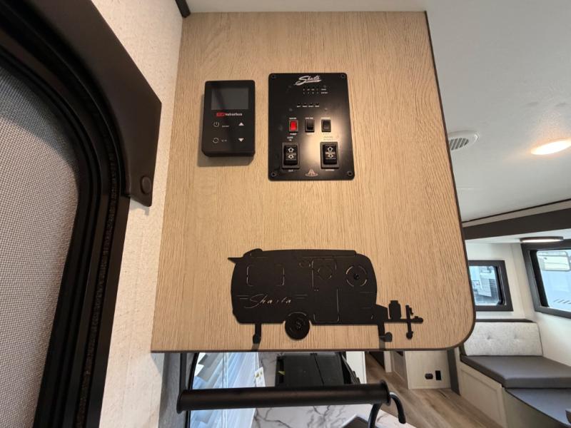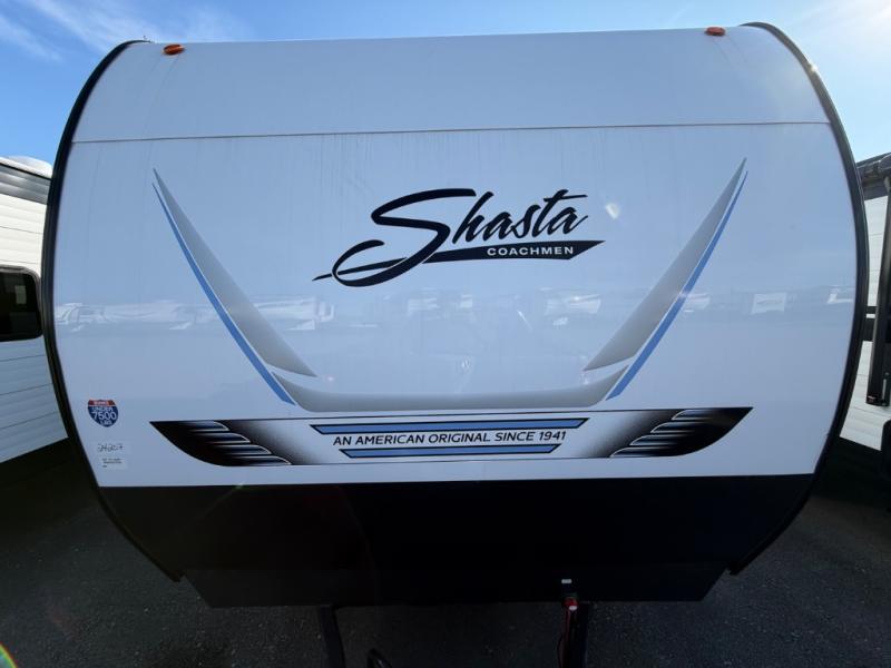 In any Shasta i-5 Edition travel trailer, you will find quality craftsmanship along with an affordable price tag. These units each feature brawn built sidewalls for sturdiness and an enclosed underbelly for added protection as you travel. The Base Camp Package provides each unit with black tank flush, a monitor panel for quick access to the functions of your unit, a 13.5K A/C unit, and a tankless water heater for added convenience. Inside, you'll find pocket-bored and screwed cabinets, skylights, a portable Bluetooth speaker, and more comforts!