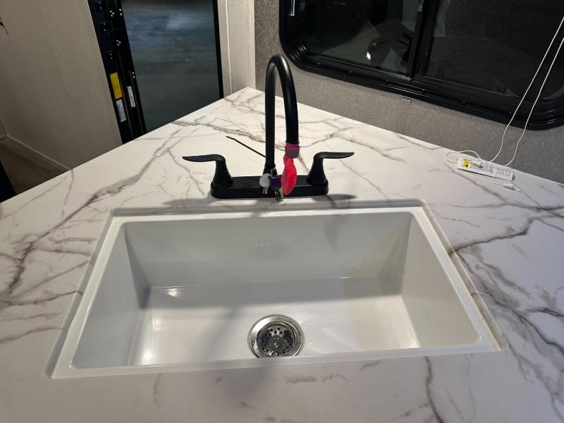 In any Shasta i-5 Edition travel trailer, you will find quality craftsmanship along with an affordable price tag. These units each feature four stabilizer jacks to make setting up easier and an enclosed underbelly for added protection as you travel. The Base Camp Package provides each unit with black tank flush, a monitor panel for quick access to the functions of your unit, a 13.5K A/C unit, and a tankless water heater for added convenience. Inside, you'll find seamless countertops, sink covers, a portable Bluetooth speaker, and more comforts!