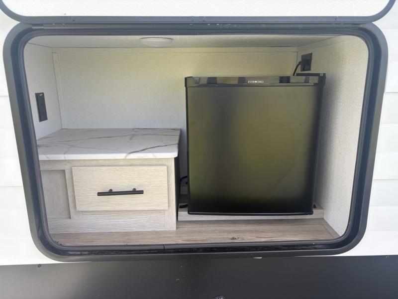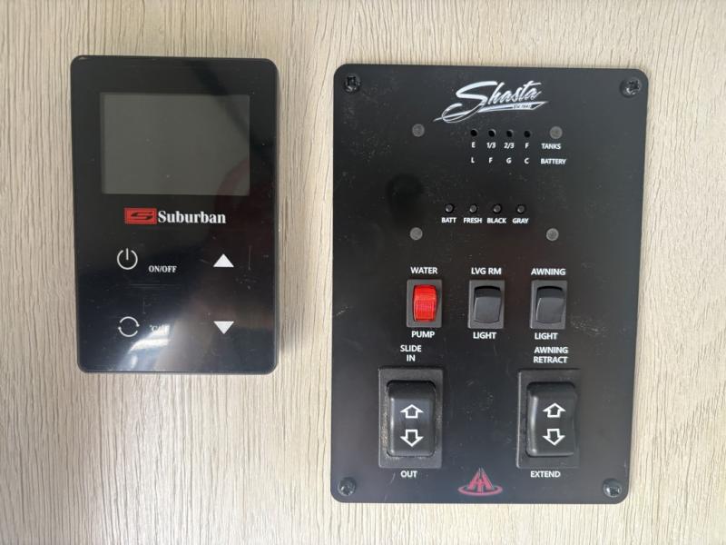 In any Shasta i-5 Edition travel trailer, you will find quality craftsmanship along with an affordable price tag. These units each feature four stabilizer jacks to make setting up easier and an enclosed underbelly for added protection as you travel. The Base Camp Package provides each unit with black tank flush, a monitor panel for quick access to the functions of your unit, a 13.5K A/C unit, and a tankless water heater for added convenience. Inside, you'll find seamless countertops, sink covers, a portable Bluetooth speaker, and more comforts!