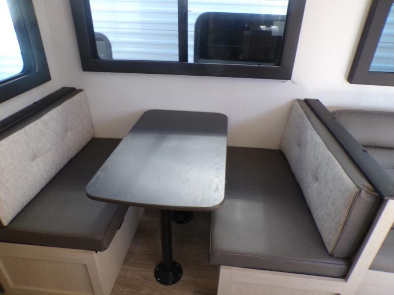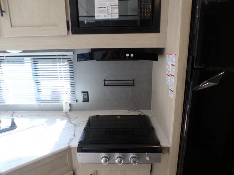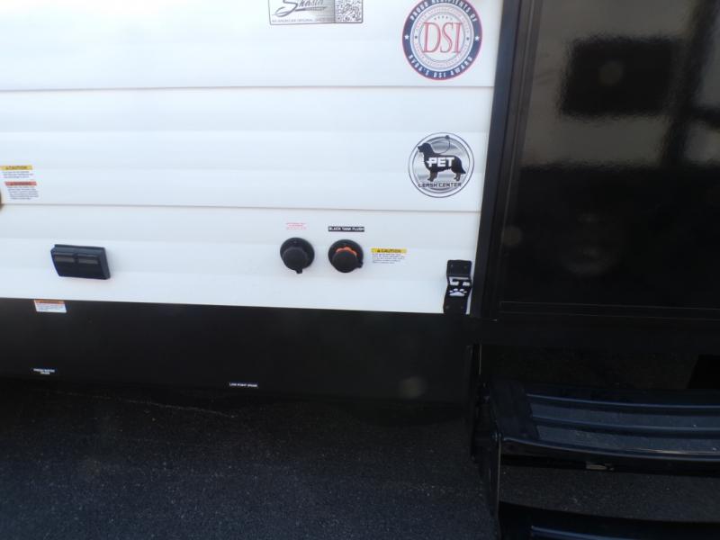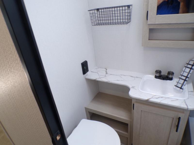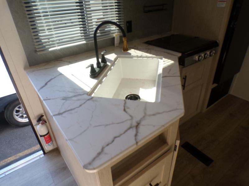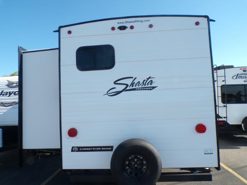 In any Shasta i-5 Edition travel trailer, you will find quality craftsmanship along with an affordable price tag. These units each feature four stabilizer jacks to make setting up easier and an enclosed underbelly for added protection as you travel. The Base Camp Package provides each unit with black tank flush, a monitor panel for quick access to the functions of your unit, a 13.5K A/C unit, and a tankless water heater for added convenience. Inside, you'll find seamless countertops, sink covers, a portable Bluetooth speaker, and more comforts!