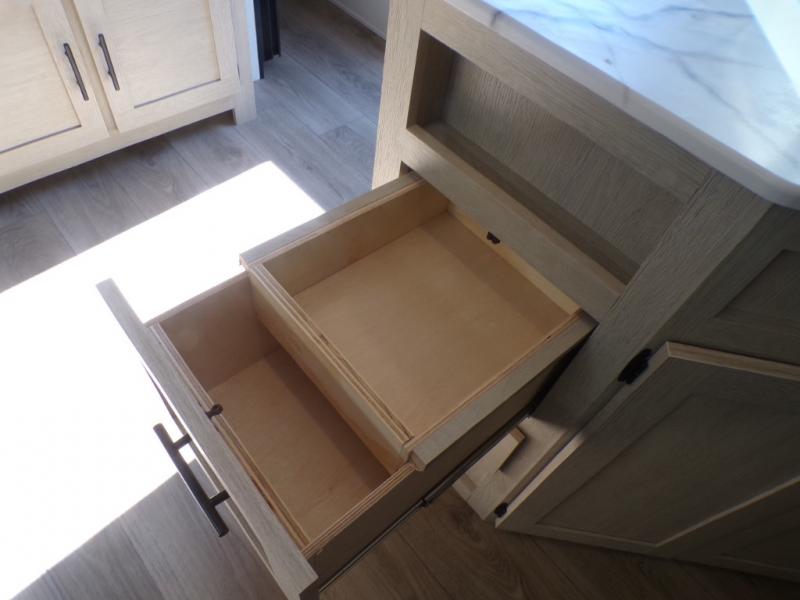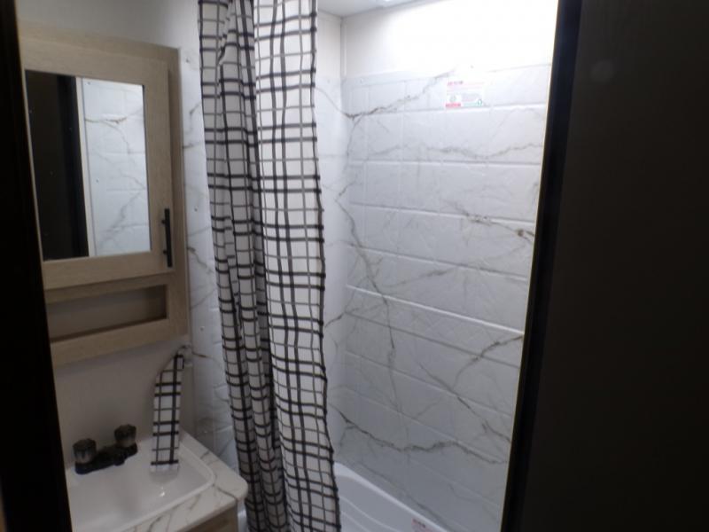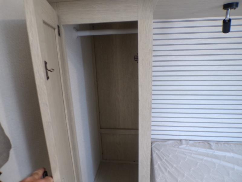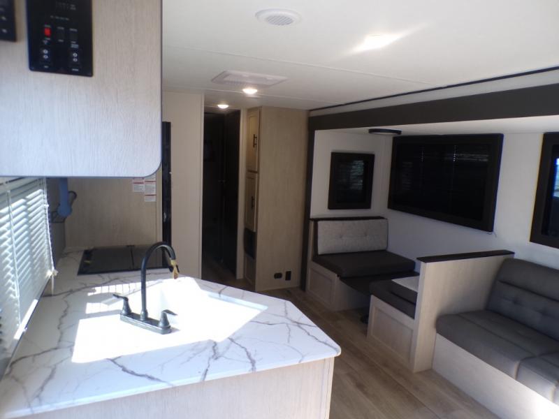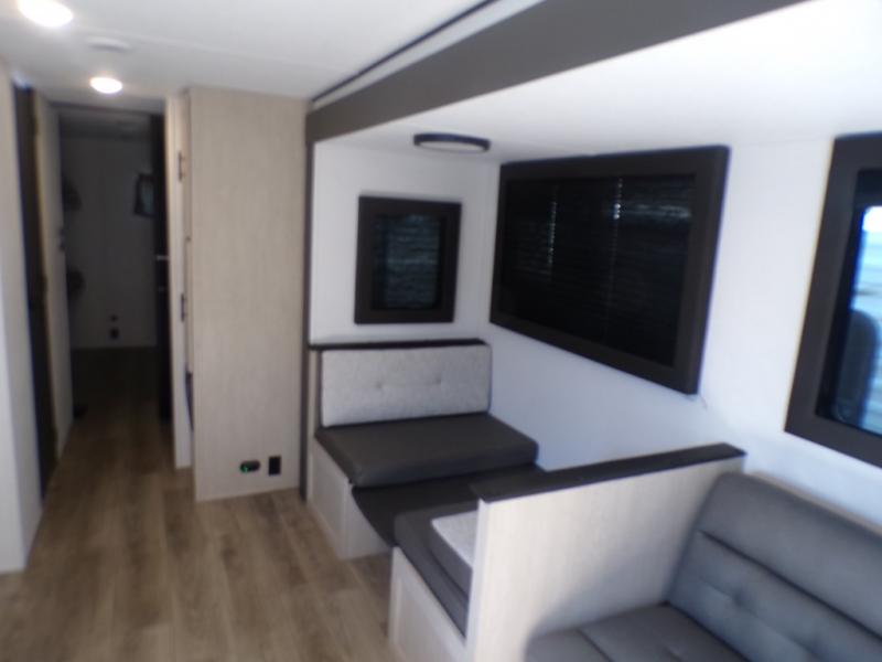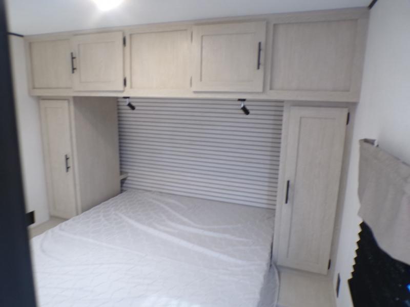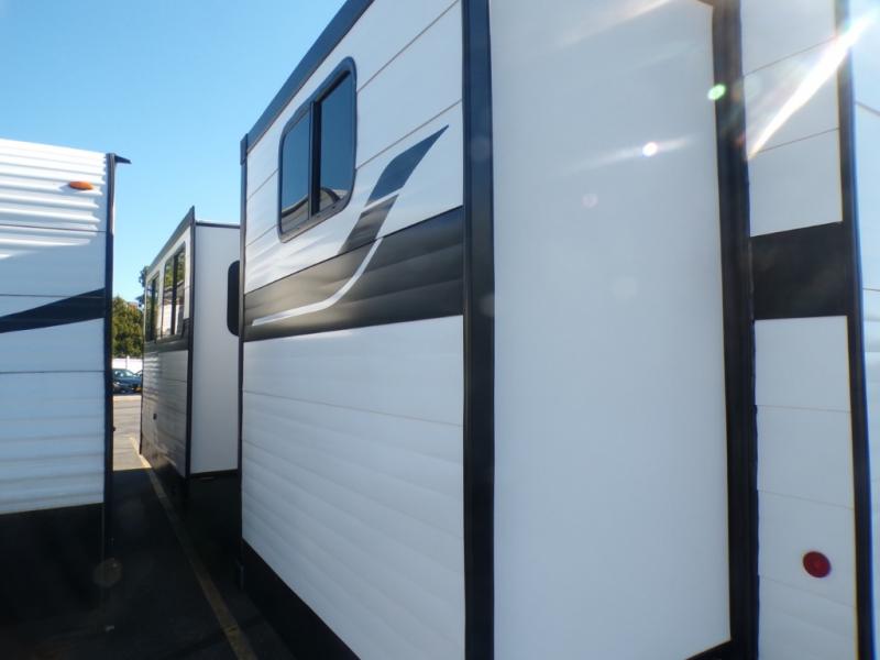 There are a set of 38" x 74" bunks and a set of 26" x 74" bunks in this trailer for lots of sleeping space! This bunkroom also includes a slide out for more space, and you can choose the optional double suite with a 54" x 74" bed if you don't need the bunks. The kitchen is fully equipped for your camping trips featuring a three burner cooktop, an overhead microwave oven, a large sink, and plenty of storage space. You will also love the pantry for all of your canned goods and snacks. The bath features a 24" x 40" shower, toilet, and vanity/sink. In the front of this unit, a private bedroom provides a quiet retreat from the rest of the unit with dual entry doors, and you'll appreciate having dual bedroom wardrobes to keep your clothes organized. Outside, enjoy pass-through storage for all of your outdoor camping gear plus more.