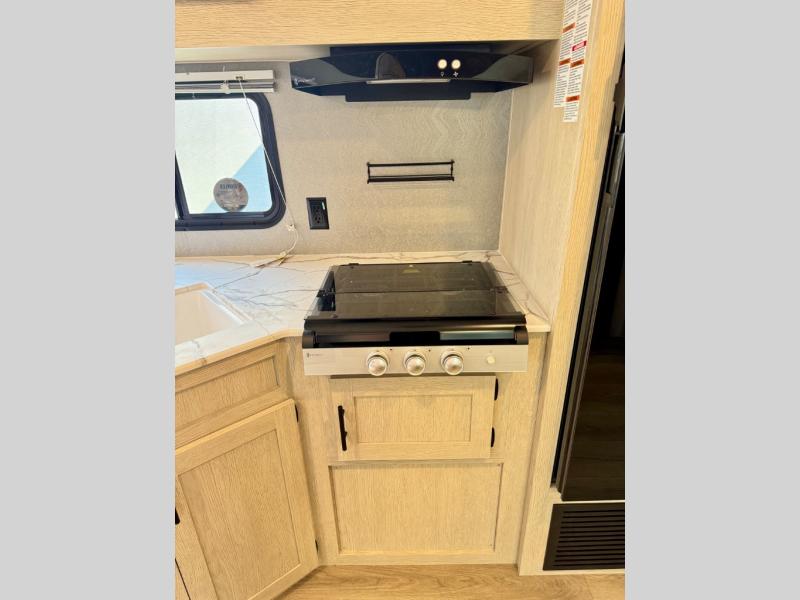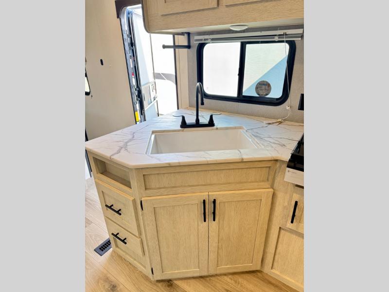 In any Shasta i-5 Edition travel trailer, you will find quality craftsmanship along with an affordable price tag. These units each feature four stabilizer jacks to make setting up easier and an enclosed underbelly for added protection as you travel. The Base Camp Package provides each unit with black tank flush, a monitor panel for quick access to the functions of your unit, a 13.5K A/C unit, and a tankless water heater for added convenience. Inside, you'll find seamless countertops, sink covers, a portable Bluetooth speaker, and more comforts!