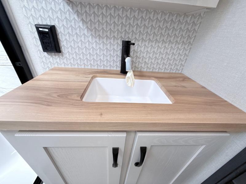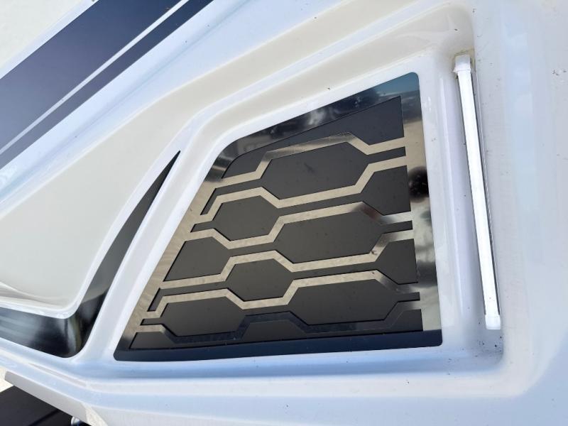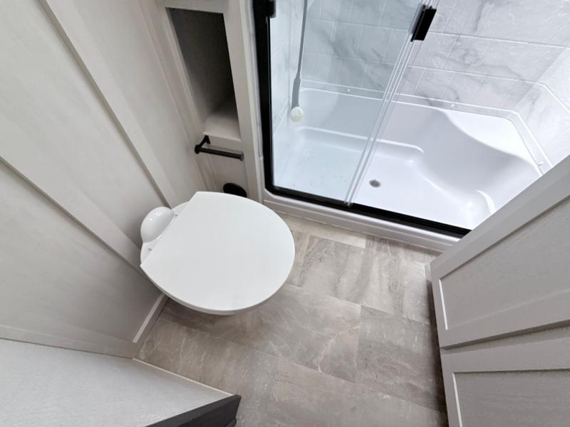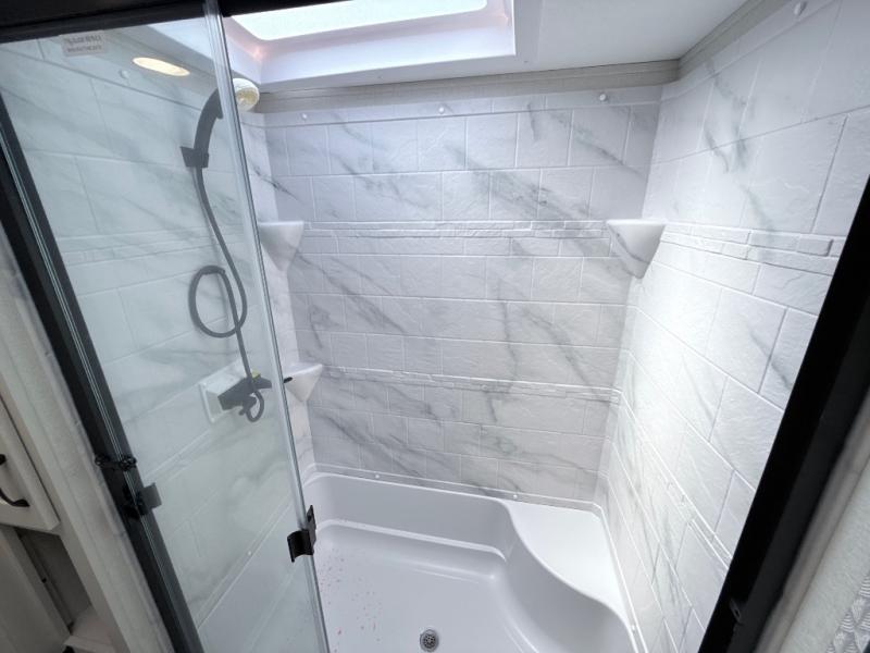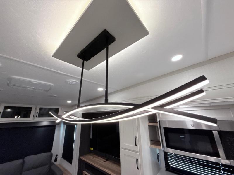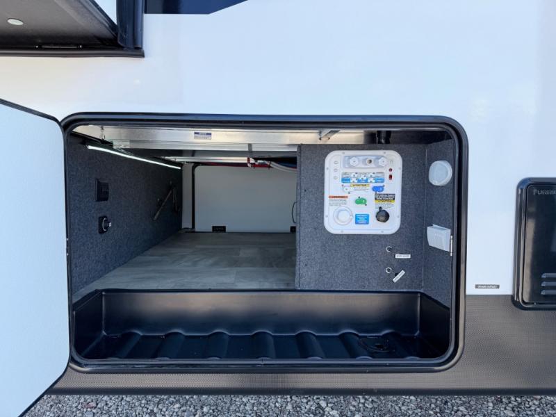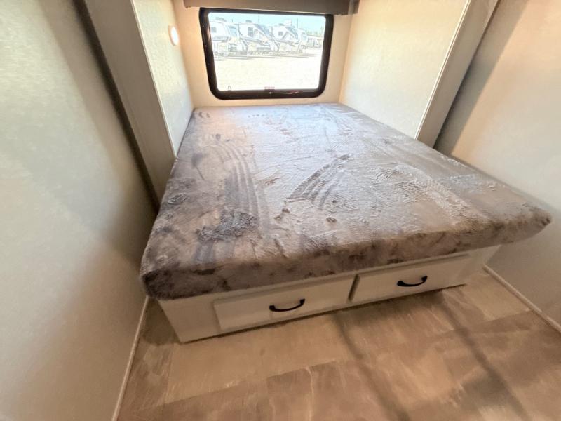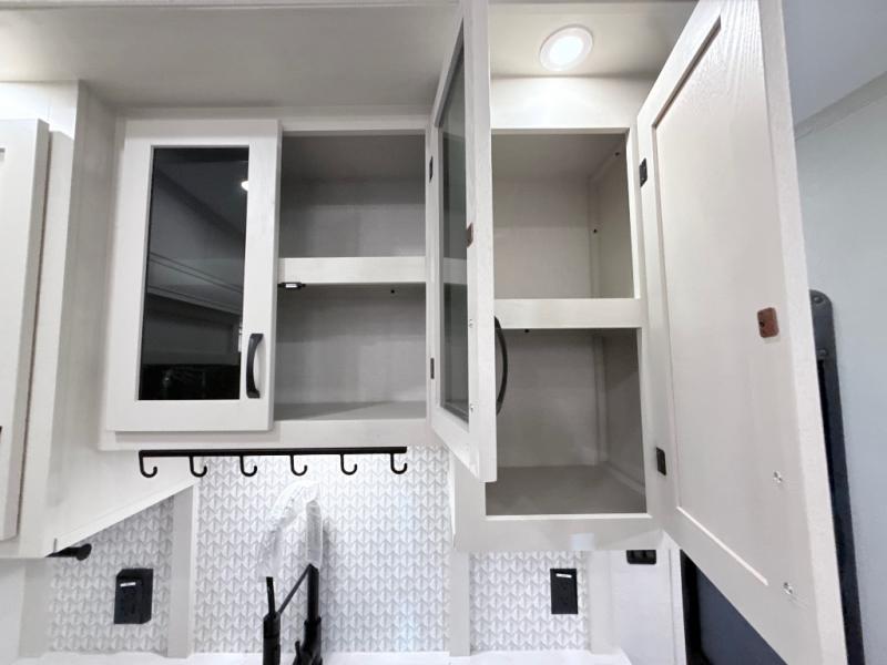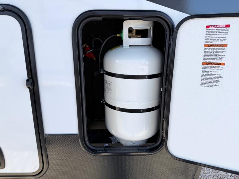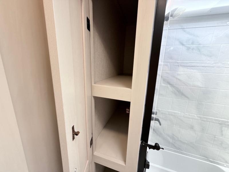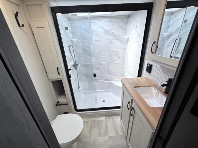 With any Phoenix mid-profile fifth wheel by Shasta RVs, the stand out construction features include residential 5" truss rafters, full walk-on roof decking, vacuum bonded and aluminum framed sidewalls with rot proof AZDEL composite sidewall panels. The Weather Shield+ offers cold and hot testing, 12V thermal tank heaters on all tanks, a sectionalized underbelly and heated gate valves and more so you can camp during any season you wish. The Road Armor Suspension by Trail Air will make towing easier than ever, and the upgraded marine-style convenience center includes a black tank flush plus a hot/cold shower to wash off hiking gear. Head inside to find solid surface countertops and sink covers, an upgraded 50" 4K Smart LED TV in the living room, USB/USB-C charging ports, and an upgraded 60K BTU on-demand water heater to name a few comforts!