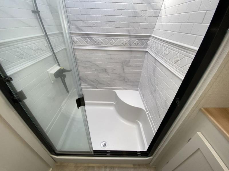 Stand out from all the others with one of these Shasta RVs Phoenix Lite fifth wheels! They are constructed with Weather Shield+ technology, dual-sided Azdel composite sidewall panels, and Tri-Tex powder coated frame technology that is ultra weather resistant. There are also electric front jacks and electric rear stabilizer jacks, an electric awning with LED light strip and one hand pitch adjustment, and a roof mounted solar panel within the Solar Source+ Package. The interior includes USB charging ports, slow rise blackout roller night shades, and a large transom window in the kitchen. You will also enjoy the upgraded GE 13,500 BTU dual ducted main A/C to keep you comfortable throughout your fifth wheel, plus an upgraded 60K BTU on-demand water heater for endless hot showers!