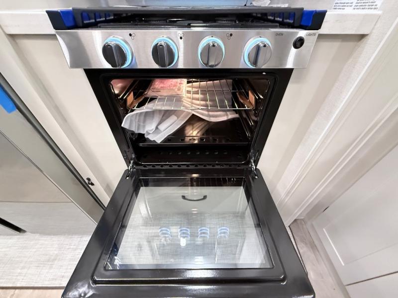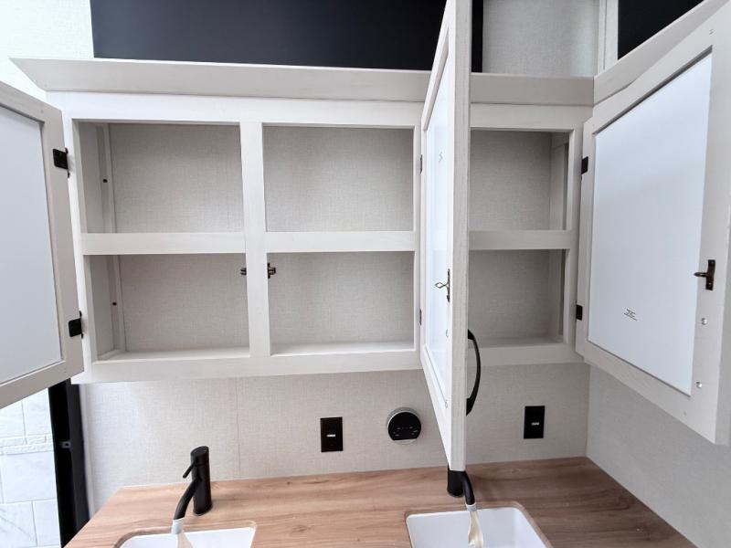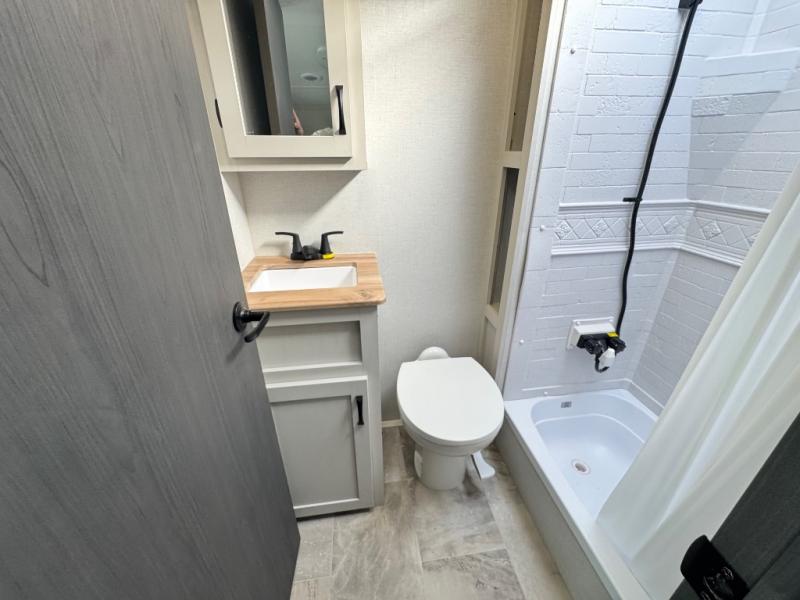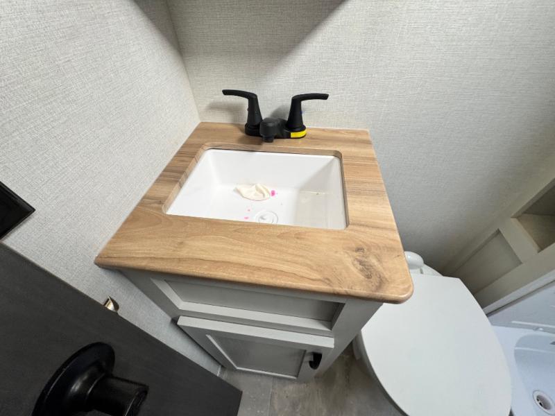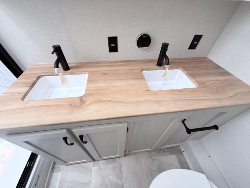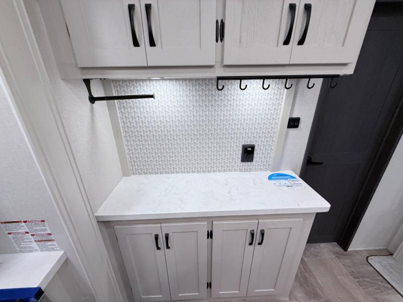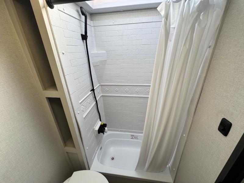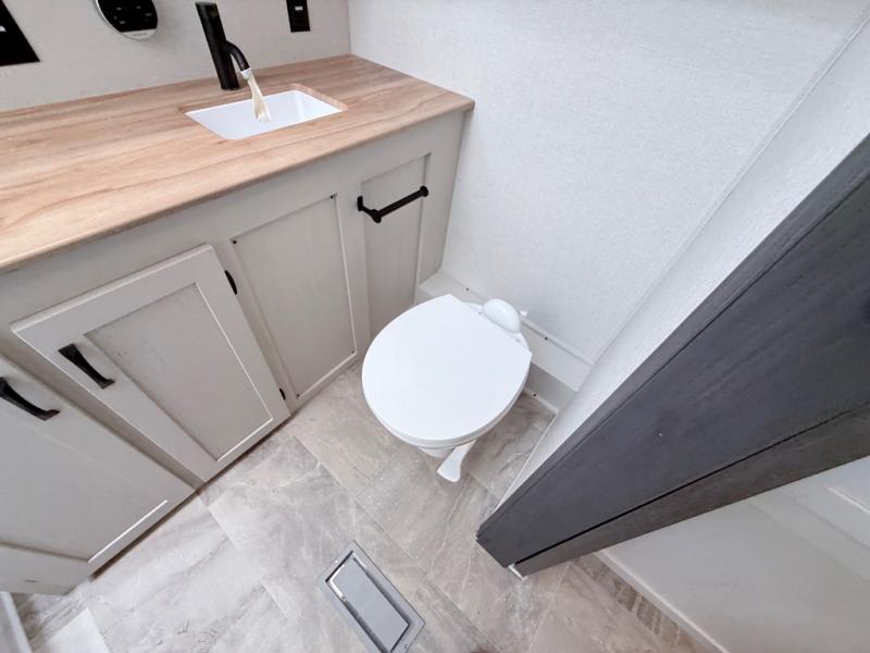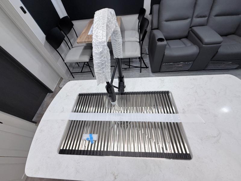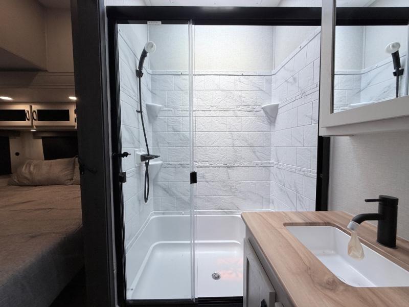 With any Phoenix mid-profile fifth wheel by Shasta RVs, the stand out construction features include residential 5" truss rafters, full walk-on roof decking, vacuum bonded and aluminum framed sidewalls with rot proof AZDEL composite sidewall panels. The Weather Shield+ offers cold and hot testing, 12V thermal tank heaters on all tanks, a sectionalized underbelly and heated gate valves and more so you can camp during any season you wish. The Road Armor Suspension by Trail Air will make towing easier than ever, and the upgraded marine-style convenience center includes a black tank flush plus a hot/cold shower to wash off hiking gear. Head inside to find solid surface countertops and sink covers, an upgraded 50" 4K Smart LED TV in the living room, USB/USB-C charging ports, and an upgraded 60K BTU on-demand water heater to name a few comforts!