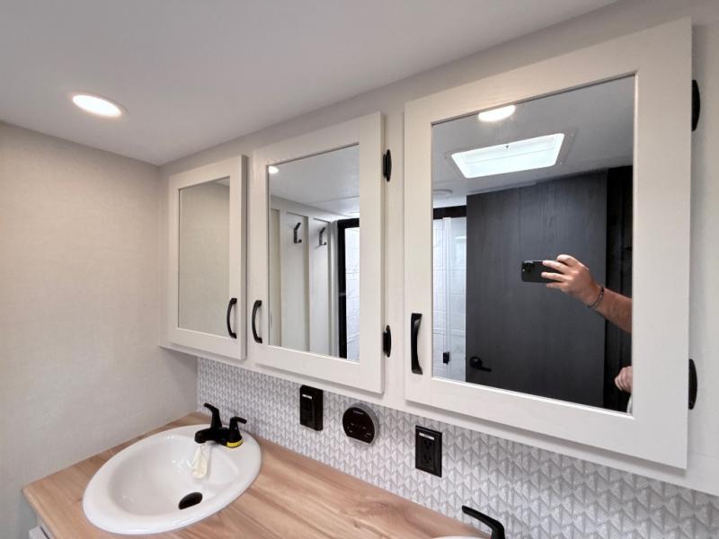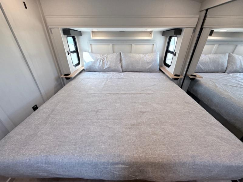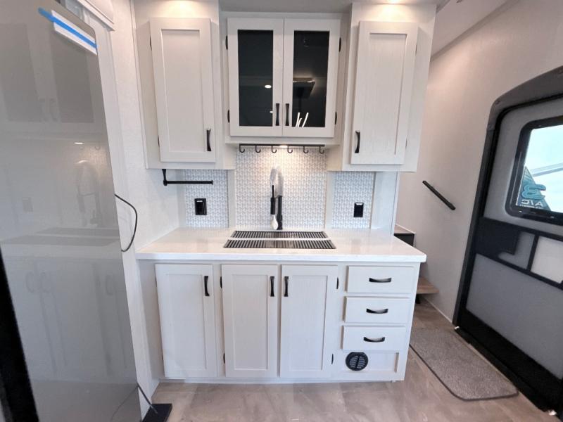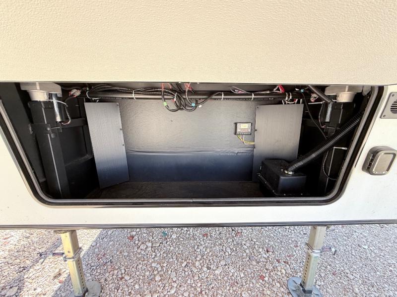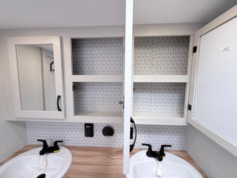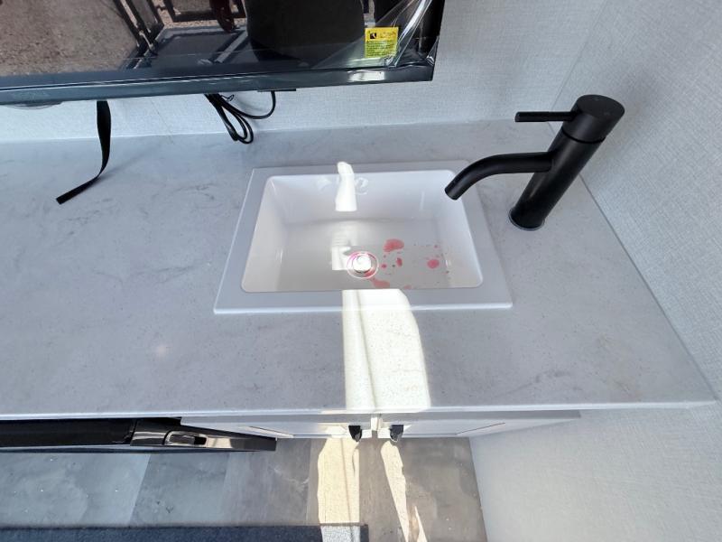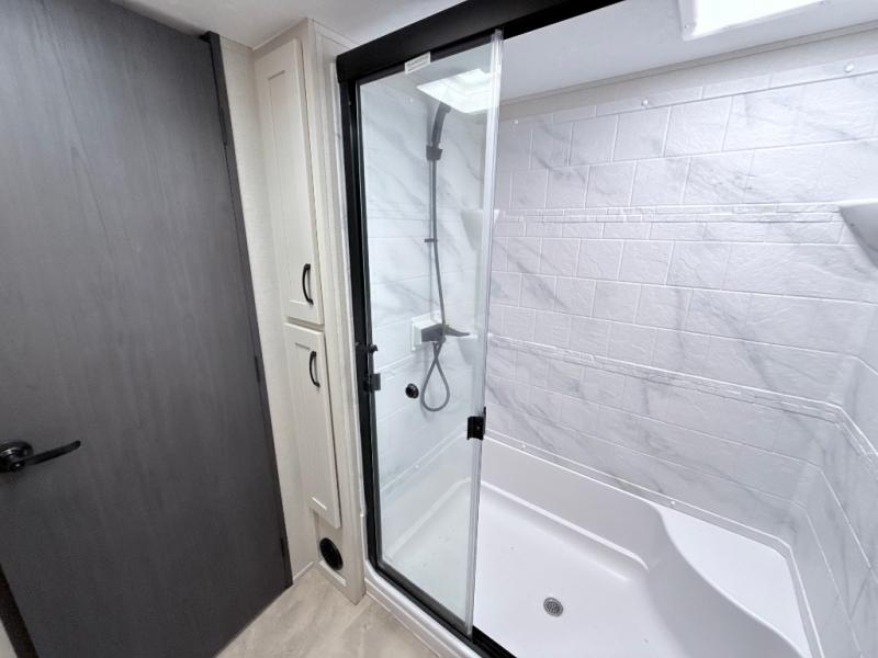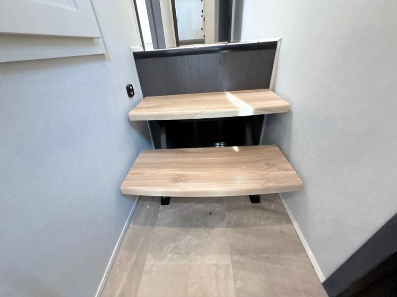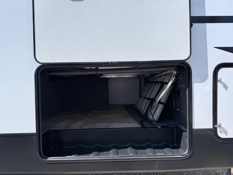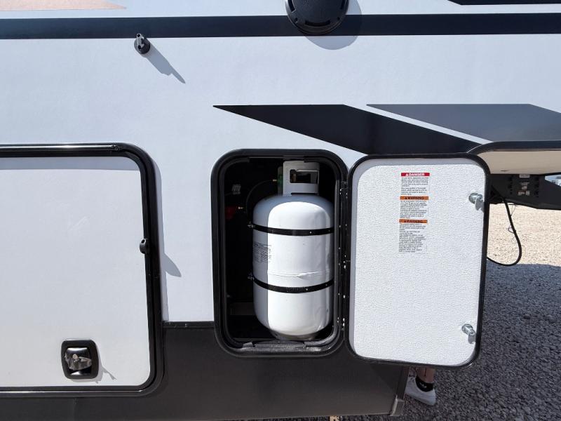 With any Phoenix mid-profile fifth wheel by Shasta RVs, the stand out construction features include residential 5" truss rafters, full walk-on roof decking, vacuum bonded and aluminum framed sidewalls with rot proof AZDEL composite sidewall panels. The Weather Shield+ offers cold and hot testing, 12V thermal tank heaters on all tanks, a sectionalized underbelly and heated gate valves and more so you can camp during any season you wish. The Road Armor Suspension by Trail Air will make towing easier than ever, and the upgraded marine-style convenience center includes a black tank flush plus a hot/cold shower to wash off hiking gear. Head inside to find solid surface countertops and sink covers, an upgraded 50" 4K Smart LED TV in the living room, USB/USB-C charging ports, and an upgraded 60K BTU on-demand water heater to name a few comforts!