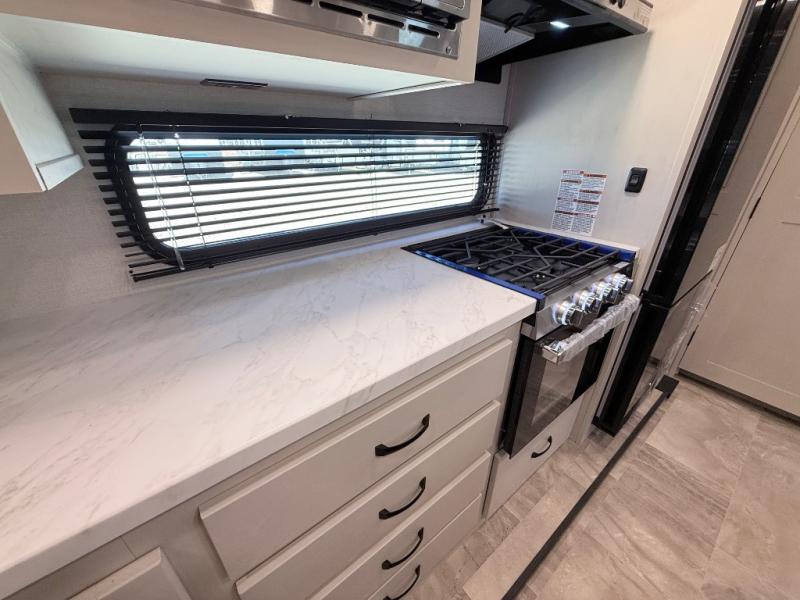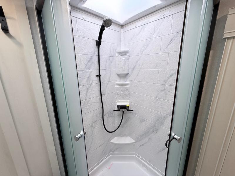 Stand out from all the others with one of these Shasta RVs Phoenix Lite fifth wheels! They are constructed with Weather Shield+ technology, dual-sided Azdel composite sidewall panels, and Tri-Tex powder coated frame technology that is ultra weather resistant. There are also electric front jacks and electric rear stabilizer jacks, an electric awning with LED light strip and one hand pitch adjustment, and a roof mounted solar panel within the Solar Source+ Package. The interior includes USB charging ports, slow rise blackout roller night shades, and a large transom window in the kitchen. You will also enjoy the upgraded GE 13,500 BTU dual ducted main A/C to keep you comfortable throughout your fifth wheel, plus an upgraded 60K BTU on-demand water heater for endless hot showers!
