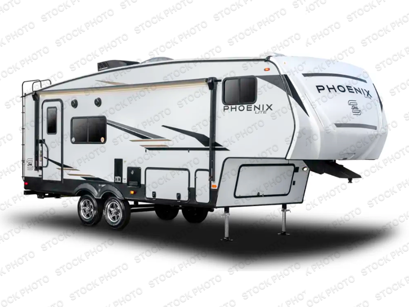 Stand out from all the others with one of these Shasta RVs Phoenix Lite fifth wheels! They are constructed with Weather Shield+ technology, dual-sided Azdel composite sidewall panels, and Tri-Tex powder coated frame technology that is ultra weather resistant. There are also electric front jacks and electric rear stabilizer jacks, an electric awning with LED light strip and one hand pitch adjustment, and a roof mounted solar panel within the Solar Source+ Package. The interior includes USB charging ports, slow rise blackout roller night shades, and a large transom window in the kitchen. You will also enjoy the upgraded GE 13,500 BTU dual ducted main A/C to keep you comfortable throughout your fifth wheel, plus an upgraded 60K BTU on-demand water heater for endless hot showers!
