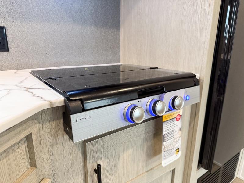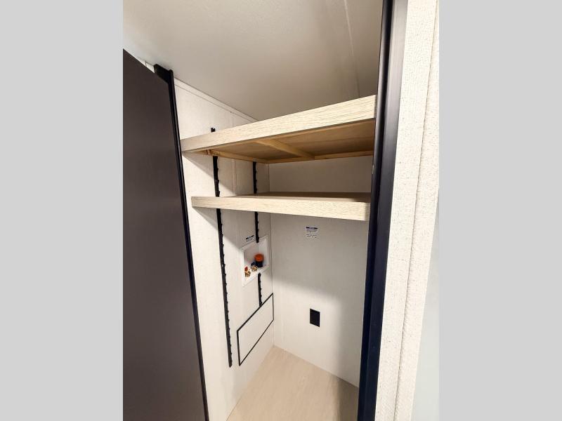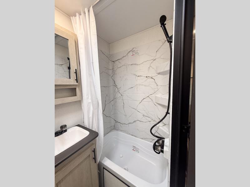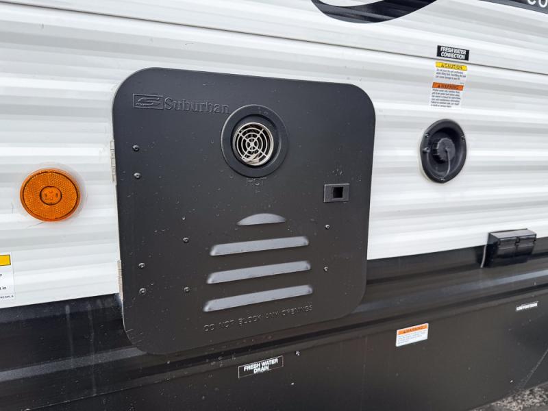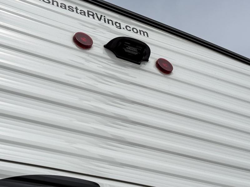 With each Shasta travel trailer by Shasta RVs, premium construction products are used such as 2x2 wood studs 16" on center or less, tinted black-framed radius safety glass windows, and full pass-through storage. Also included is an aerodynamic radius front profile, a front-colored rock guard to protect against road debris, a straight axle with electric breaks, and a power tongue jack for easy setup. The interior offers pocket-bored and screwed cabinets, USB charging stations, a pull-down faucet, and more providing value and convenience. The 200W solar panel comes with a 30-amp controller, and the tankless water heater will provide endless hot showers.