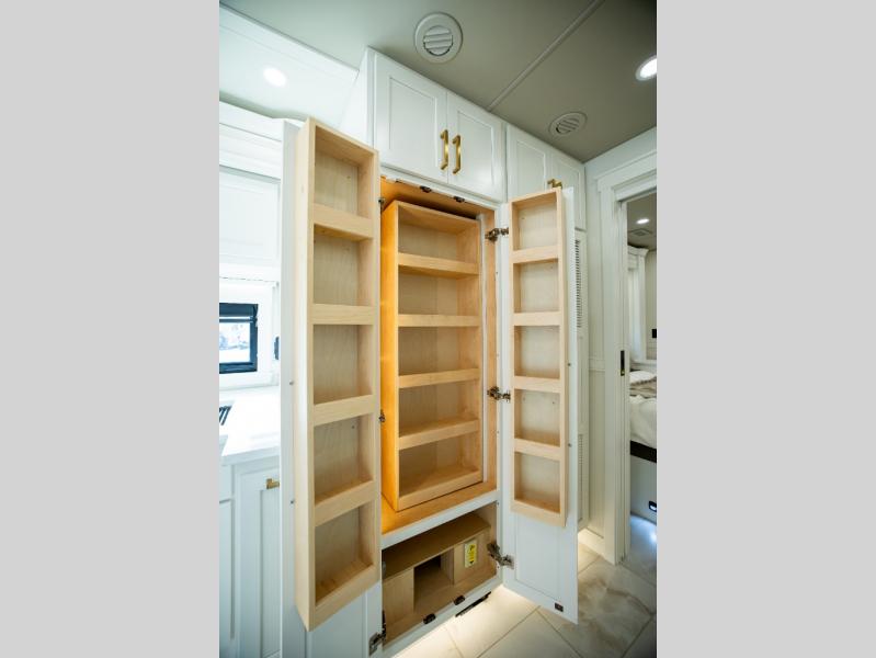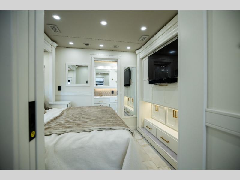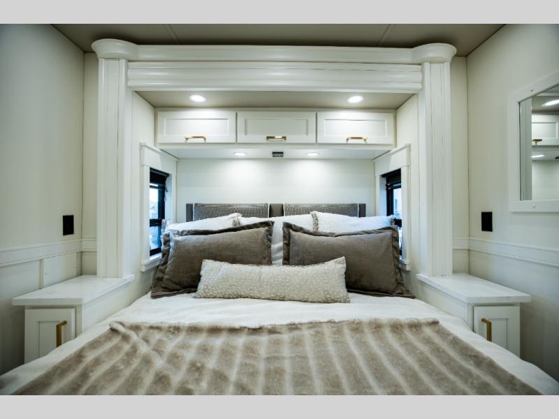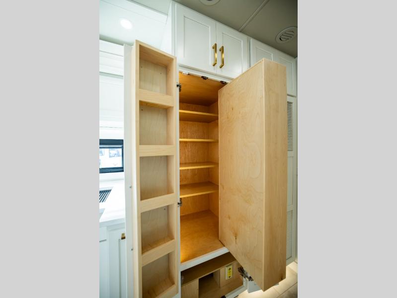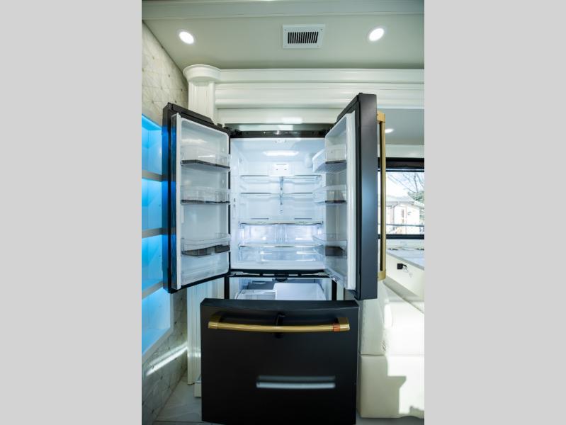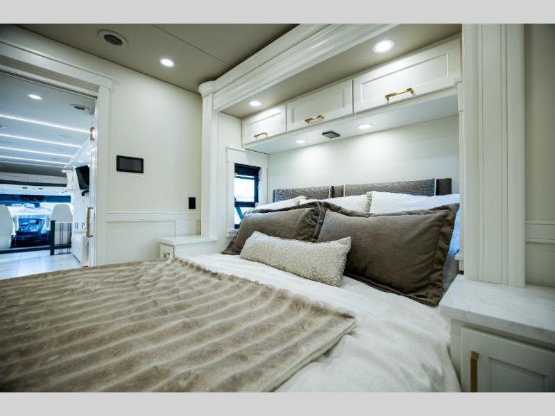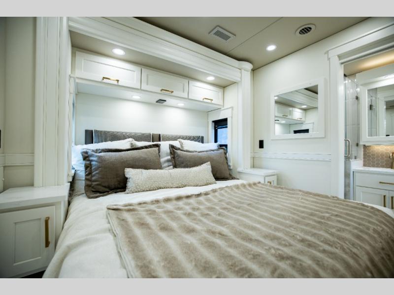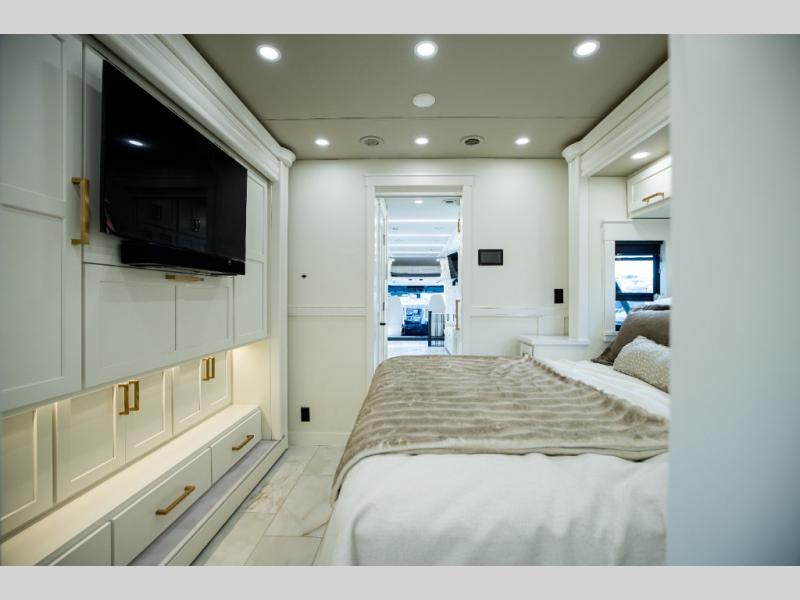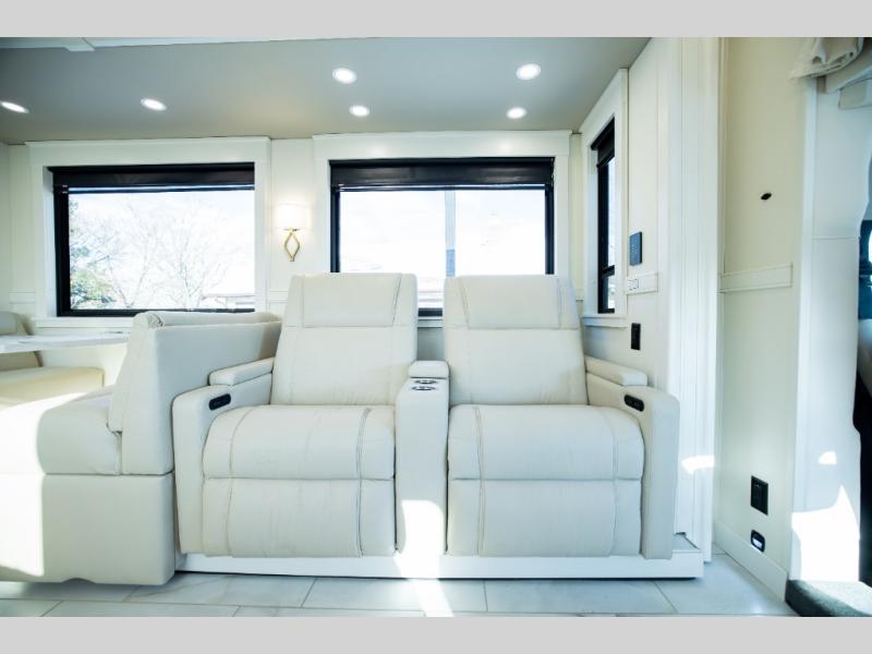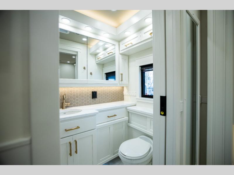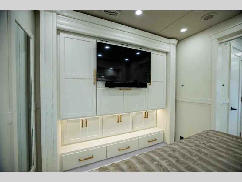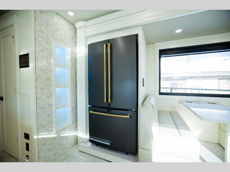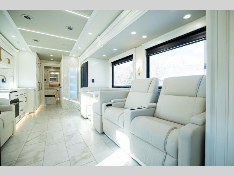 Expect to find comfort and space at every turn in this coach with four slides, a bath a half, plus a flip-up bed or storage in the cab! Once you park for the day, you can make lunch for everyone on the two-burner induction cooktop or in the over-the-range convection microwave, and there is a GE Cafe refrigerator to keep your food fresh. Your crew can dine at the booth dinette, then relax on the Villa theater seating and Villa hide-a-bed sofa once you've cleaned up. A half bath is right off of the kitchen for quick and easy access, and you'll find the full bath in the back, creating a master bedroom you are sure to love. Here, a mini king bed slide provides a great night's rest, and there is a large closet slide to keep your things organized. This coach also features washer and dryer prep if you plan to add these appliances!