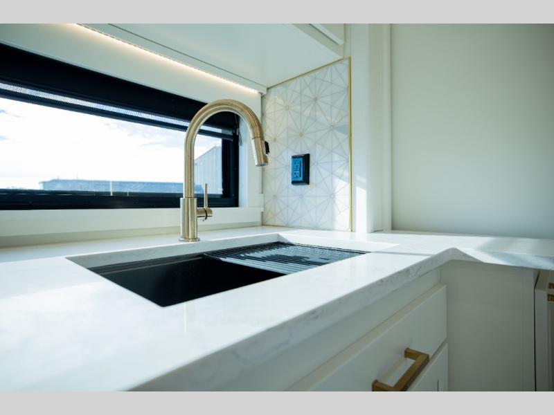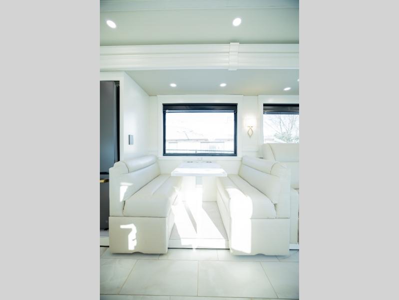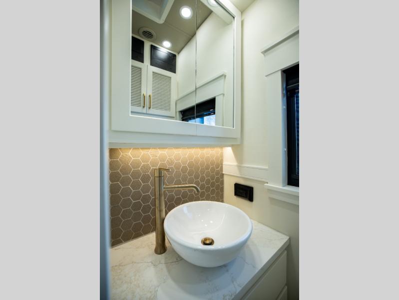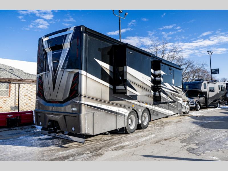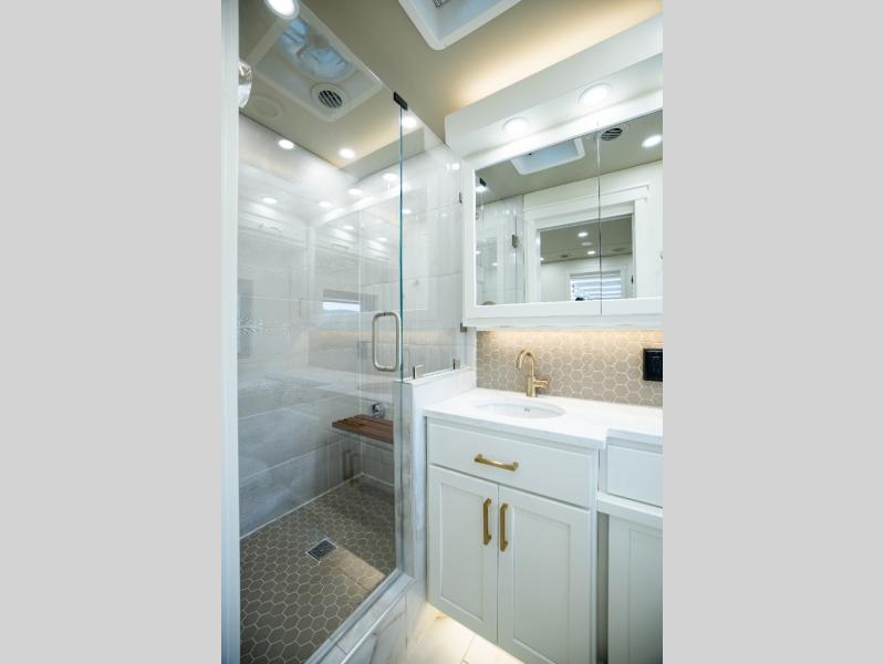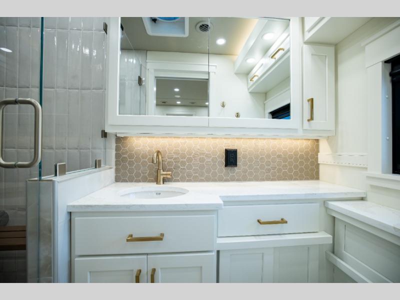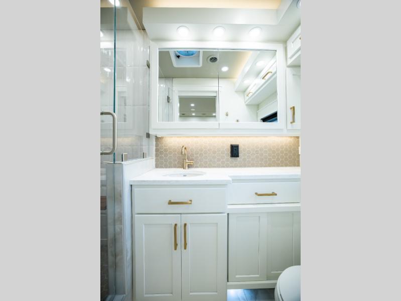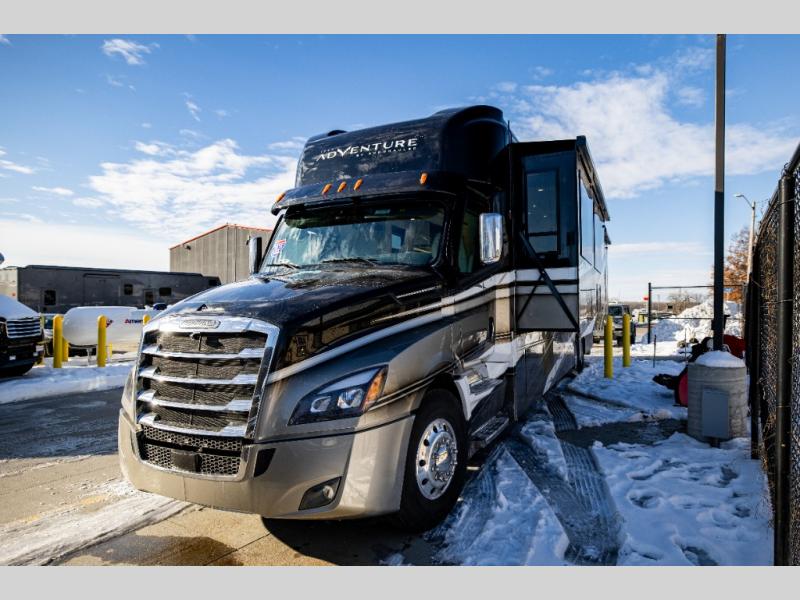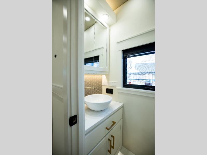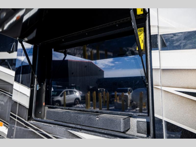 With any Adventure Super C diesel motorhome by ShowHauler, you will find a durable coach made to last thanks to the all-steel cage construction, insulated walls, floors, and ceilings, plus the one-piece 100% walk-on roof! There are lighted storage compartments outside to keep your gear secure, along with a lighted grab handle, and exterior hot/cold shower in the wet bay. You can keep your excursions powered up with the 12.5W Onan diesel generator, 1200W solar package, and Battleborn lithium battery pack. There is also a 360-degree camera/monitor for easy maneuvering and a Firefly Multi-Plex lighting control system for added convenience. You will fall in love with the interior of the Adventure with hardwood cabinets and drawers, porcelain heated tile throughout, Quartz countertops with backsplash in the kitchen, and a tiled shower with a glass door in the bath!