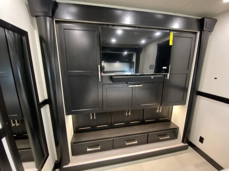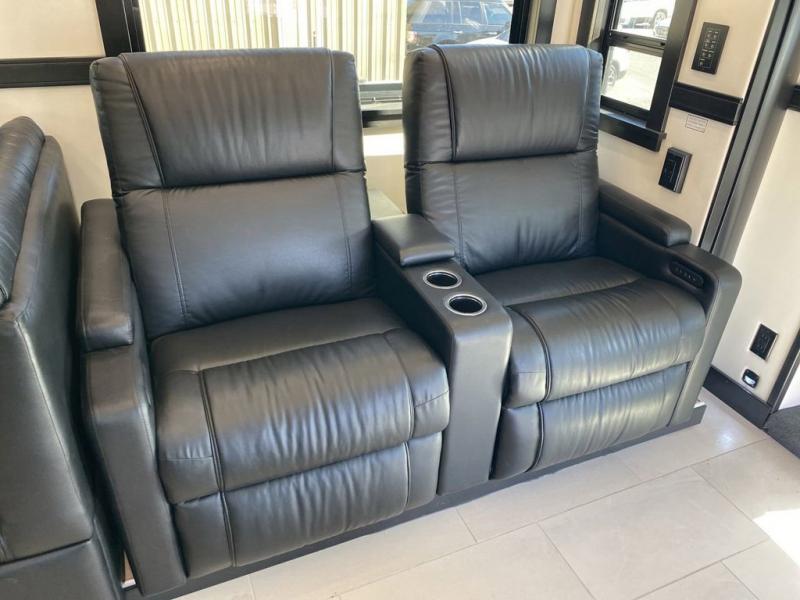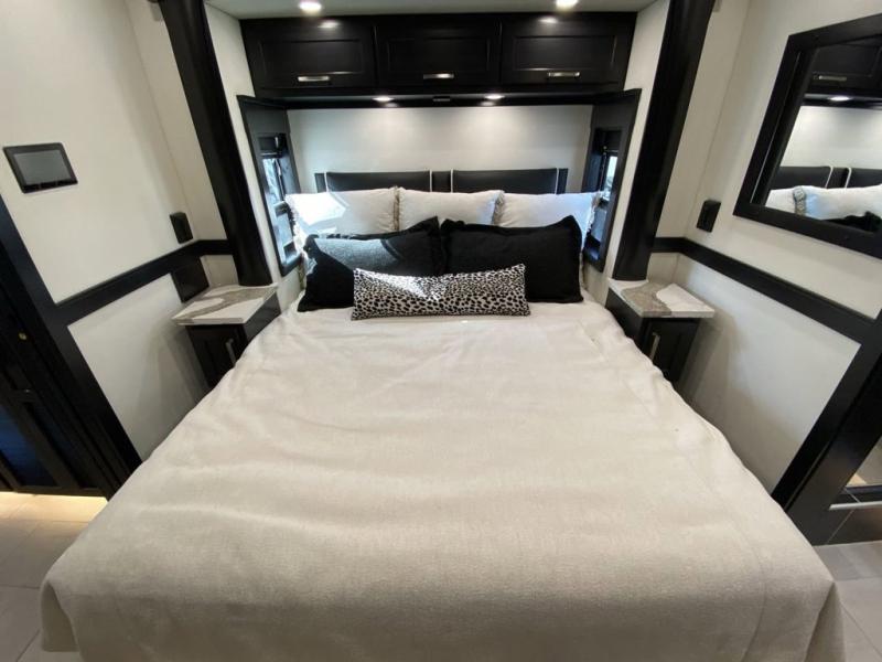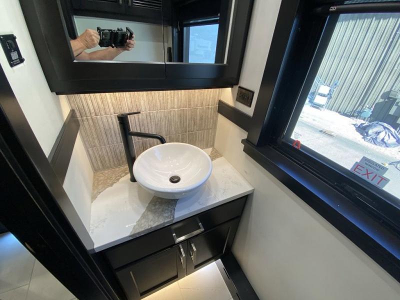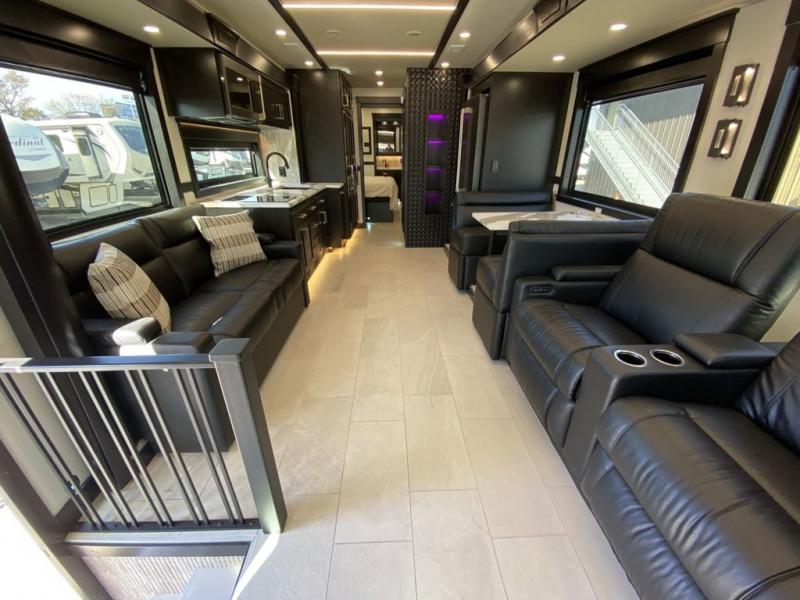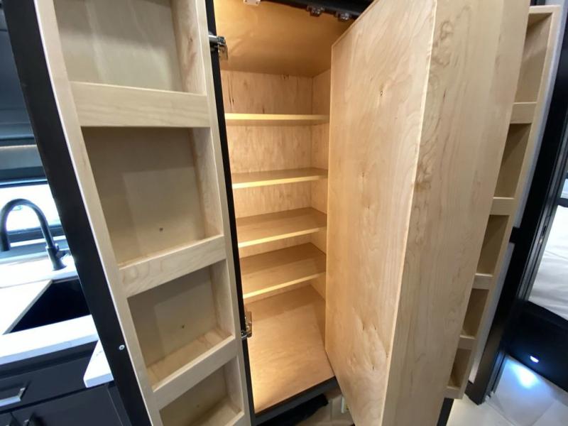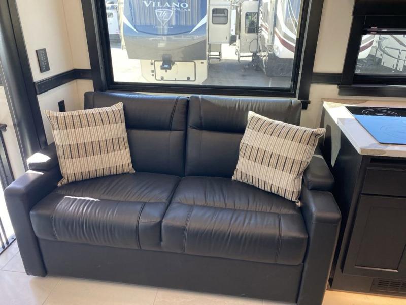 With any Adventure Super C diesel motorhome by ShowHauler, you will find a durable coach made to last thanks to the all-steel cage construction, insulated walls, floors, and ceilings, plus the one-piece 100% walk-on roof! There are lighted storage compartments outside to keep your gear secure, along with a lighted grab handle, and exterior hot/cold shower in the wet bay. You can keep your excursions powered up with the 12.5W Onan diesel generator, 1200W solar package, and Battleborn lithium battery pack. There is also a 360-degree camera/monitor for easy maneuvering and a Firefly Multi-Plex lighting control system for added convenience. You will fall in love with the interior of the Adventure with hardwood cabinets and drawers, porcelain heated tile throughout, Quartz countertops with backsplash in the kitchen, and a tiled shower with a glass door in the bath!