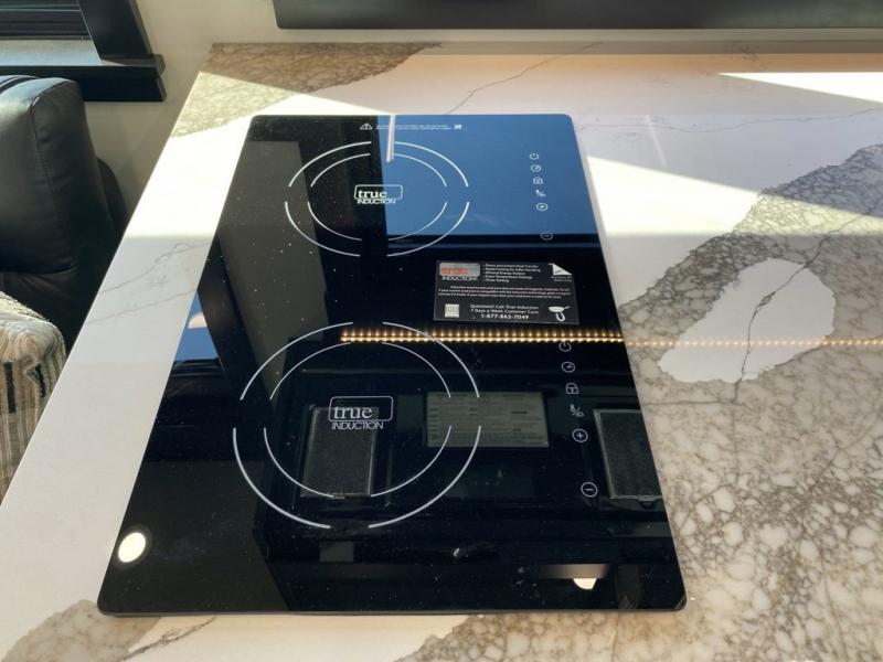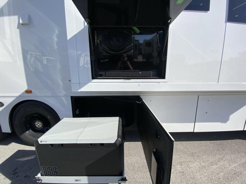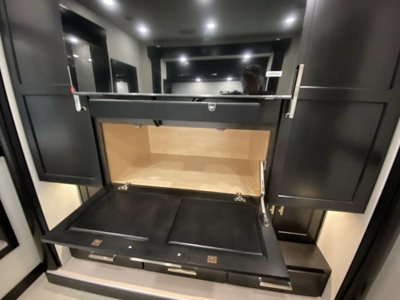 Expect to find comfort and space at every turn in this coach with four slides, a bath a half, plus a flip-up bed or storage in the cab! Once you park for the day, you can make lunch for everyone on the two-burner induction cooktop or in the over-the-range convection microwave, and there is a GE Cafe refrigerator to keep your food fresh. Your crew can dine at the booth dinette, then relax on the Villa theater seating and Villa hide-a-bed sofa once you've cleaned up. A half bath is right off of the kitchen for quick and easy access, and you'll find the full bath in the back, creating a master bedroom you are sure to love. Here, a mini king bed slide provides a great night's rest, and there is a large closet slide to keep your things organized. This coach also features washer and dryer prep if you plan to add these appliances!